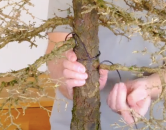 - For individual branches, wrap the wire securely around the trunk or another branch close to the one you’re shaping.