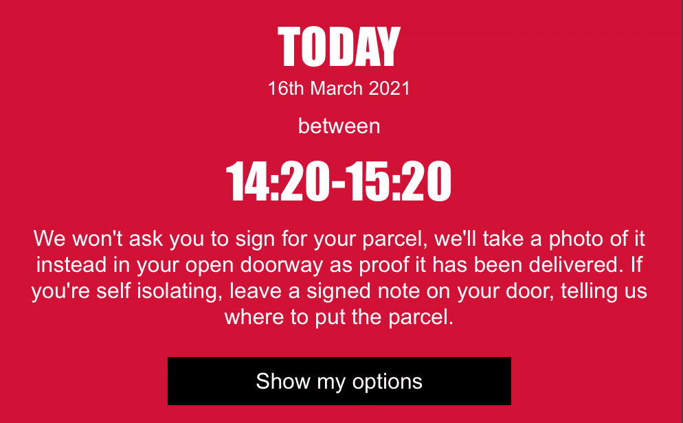Firstly, click on the ‘Show My Options’ button on your DPD notification