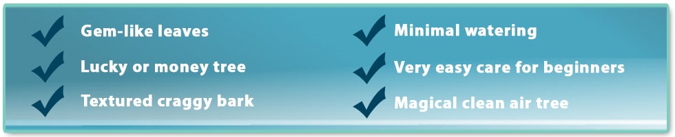 It’s also known as the lucky money tree. We think a great feature is the natural tree-like craggy bark.