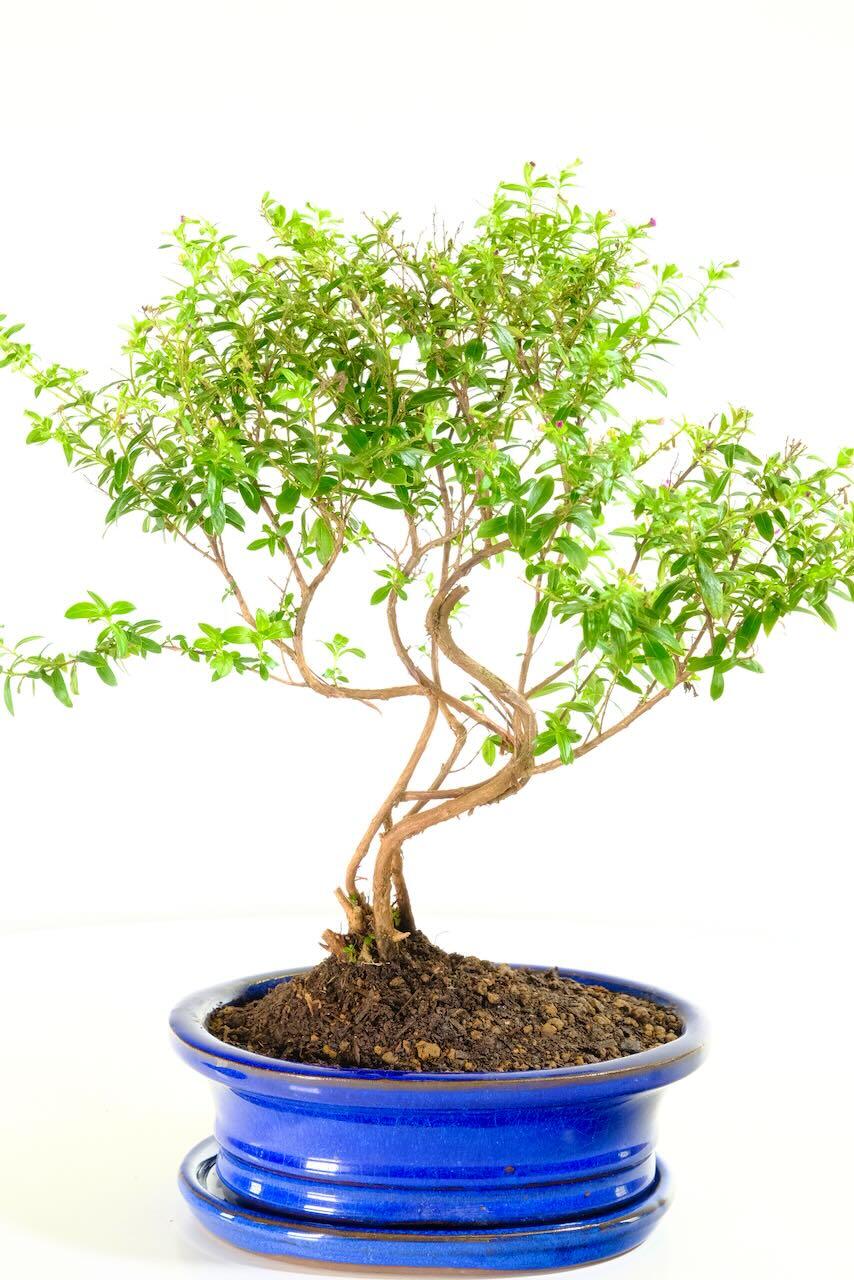 The Cuphea, sometimes called Mexican Heather, is a much-loved flowering bonsai species known for its fine branching, glossy bright-green leaves and prolific bloom cycle. This variety produces masses of delicate tubular purple-pink flowers throughout summer and often into late autumn. Indoors, it thrives with minimal fuss and offers one of the longest flowering seasons of any indoor bonsai.