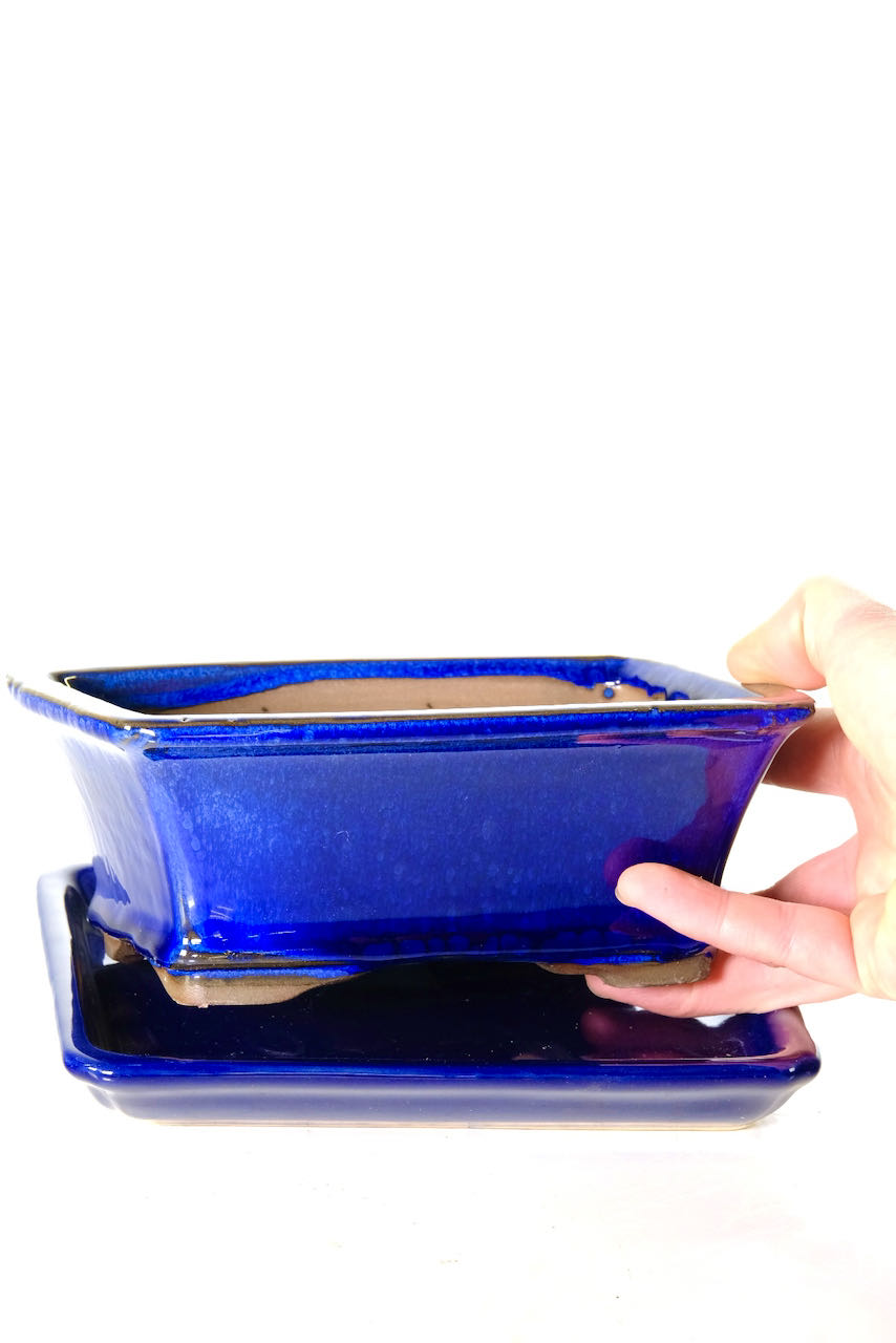 Elegant 7 Inch / 18cm Cheerful Royal Blue Bonsai Pot with Coordinating Ceramic Tray