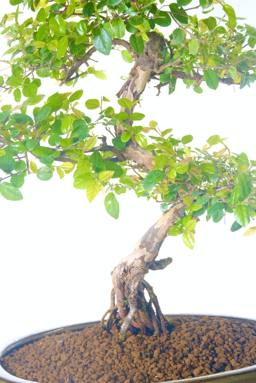 This bonsai has a beautiful curved trunk which has gnarly features, textured bark and fantastic root flare.
