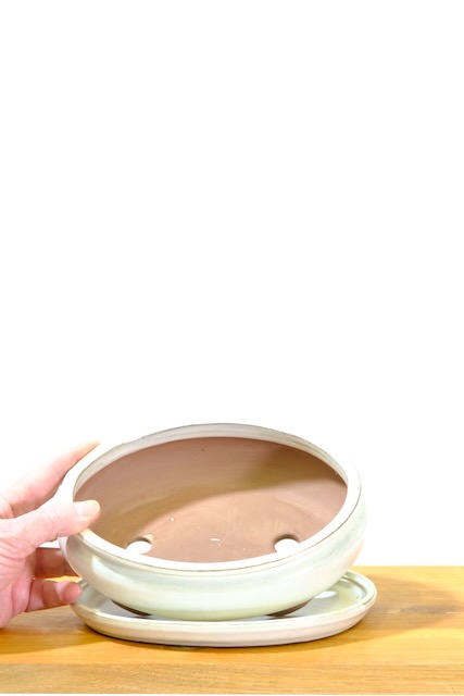 Add a contemporary touch to your bonsai display with this beautifully crafted oval bonsai pot and tray, finished in a classic cream coloured glaze. Designed to complement the artistry of your tree, this pot provides both visual beauty and functional performance. Supplied with a matching drip tray and free bonsai potting accessories, it’s perfect for both new growers.