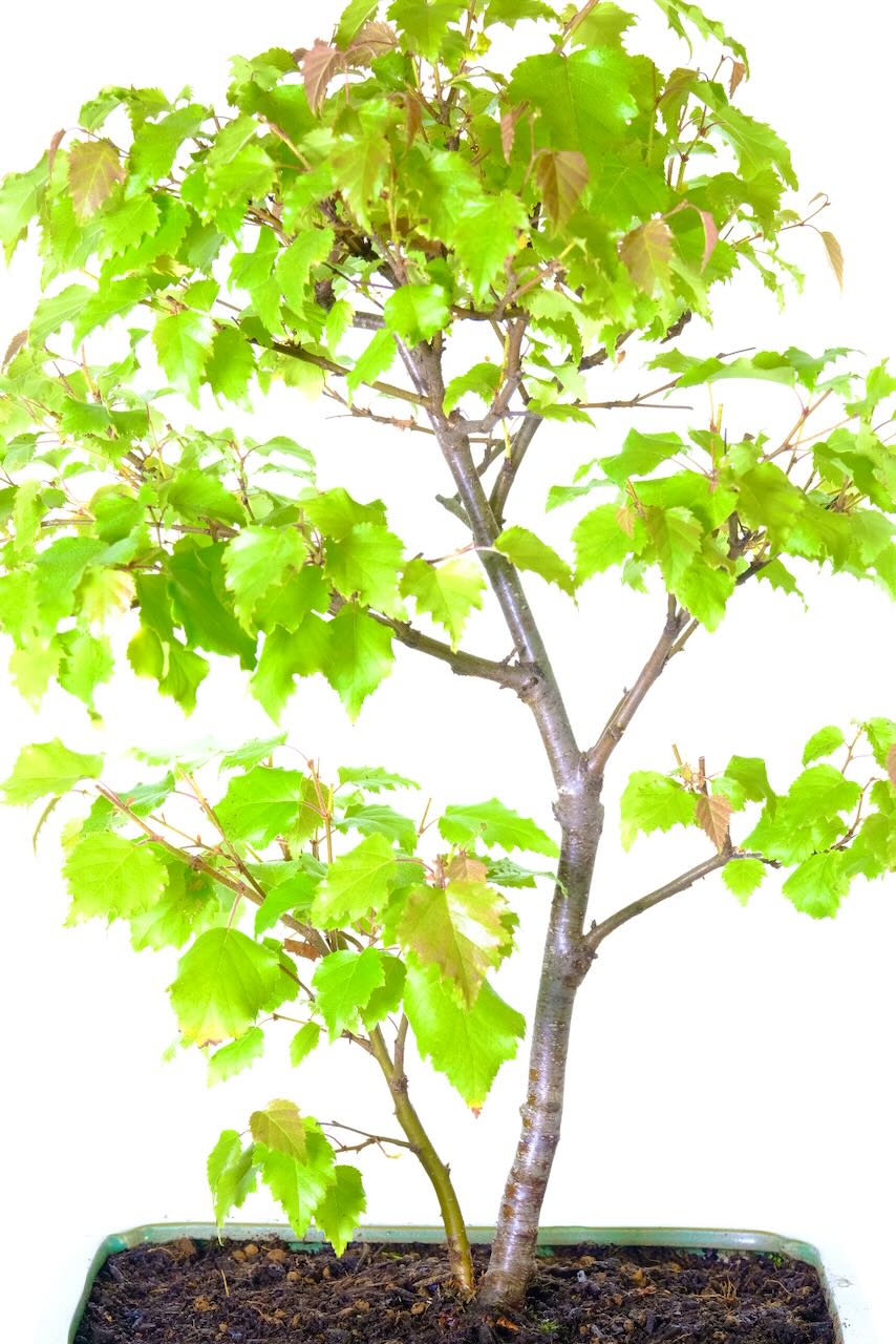 Experience the elegance of a 16-year-old Silver Birch Bonsai, a symbol of growth and beauty, nestled in an apple green pot. Father & Son bonsai style with beautiful, creative overall appeal.