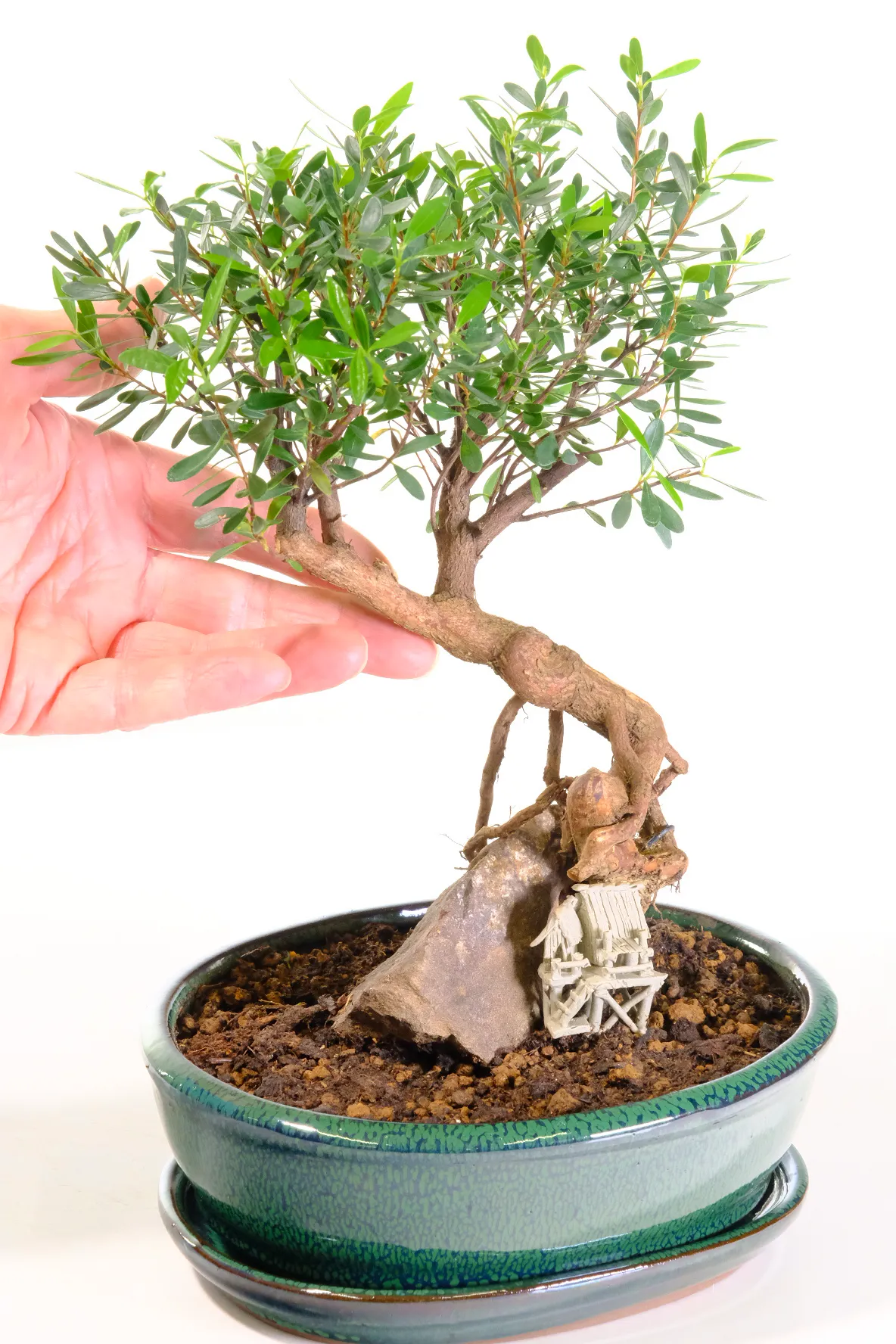 This tree combines artistry, seasonal charm, and practical functionality in one complete package. With its root over rock style, forest green pot, stilt house ornament, and matching drip tray, it delivers both beauty and enjoyment while reflecting Bonsai Direct’s commitment to quality, family expertise, and sustainable cultivation.
