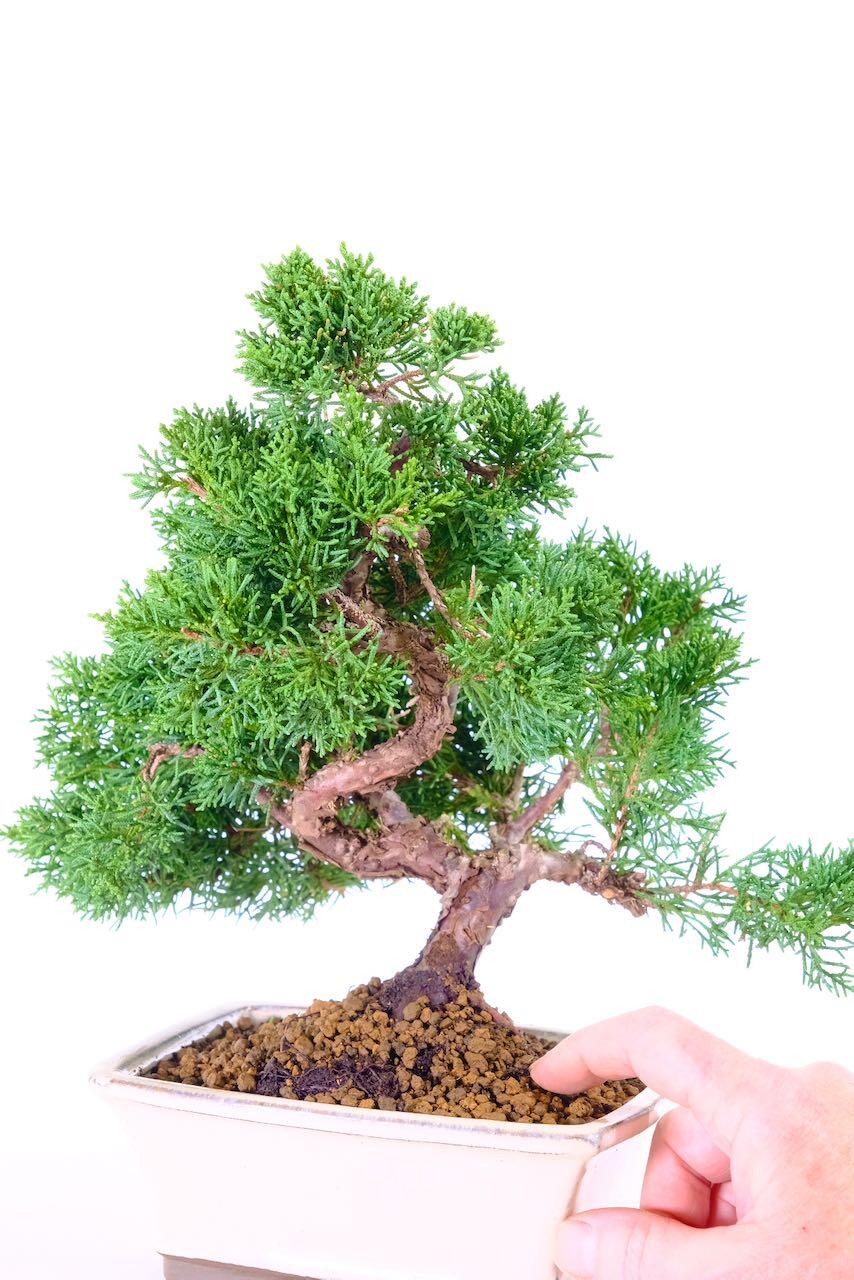 This species has a naturally elegant look. Its sweeping branches, fine-textured scale foliage, and beautifully textured reddish-brown bark give it a refined, artistic presence. As the tree ages, the bark exfoliates to reveal lighter tones beneath, enhancing its rugged, mature charm and creating the sense of an ancient tree in miniature.