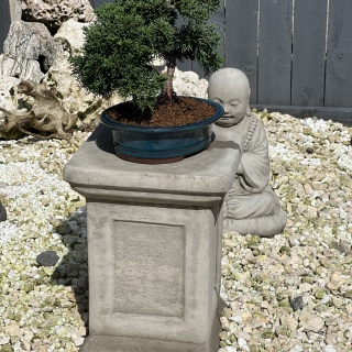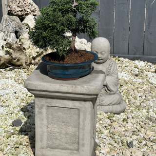Presenting a stunning and intricate evergreen Chinese Juniper bonsai, gracefully potted in a soft blue ceramic pot. This captivating bonsai embodies beauty and artistry, capturing the essence of nature’s elegance in a small but remarkable form.