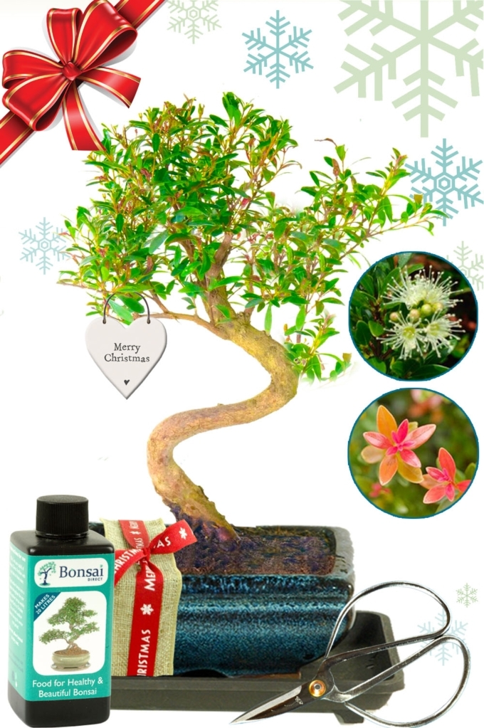 8-Year-Old Roseapple / Myrtle Christmas Bonsai Gift with Care Essentials | Elegant Fruiting & Flowering Tree