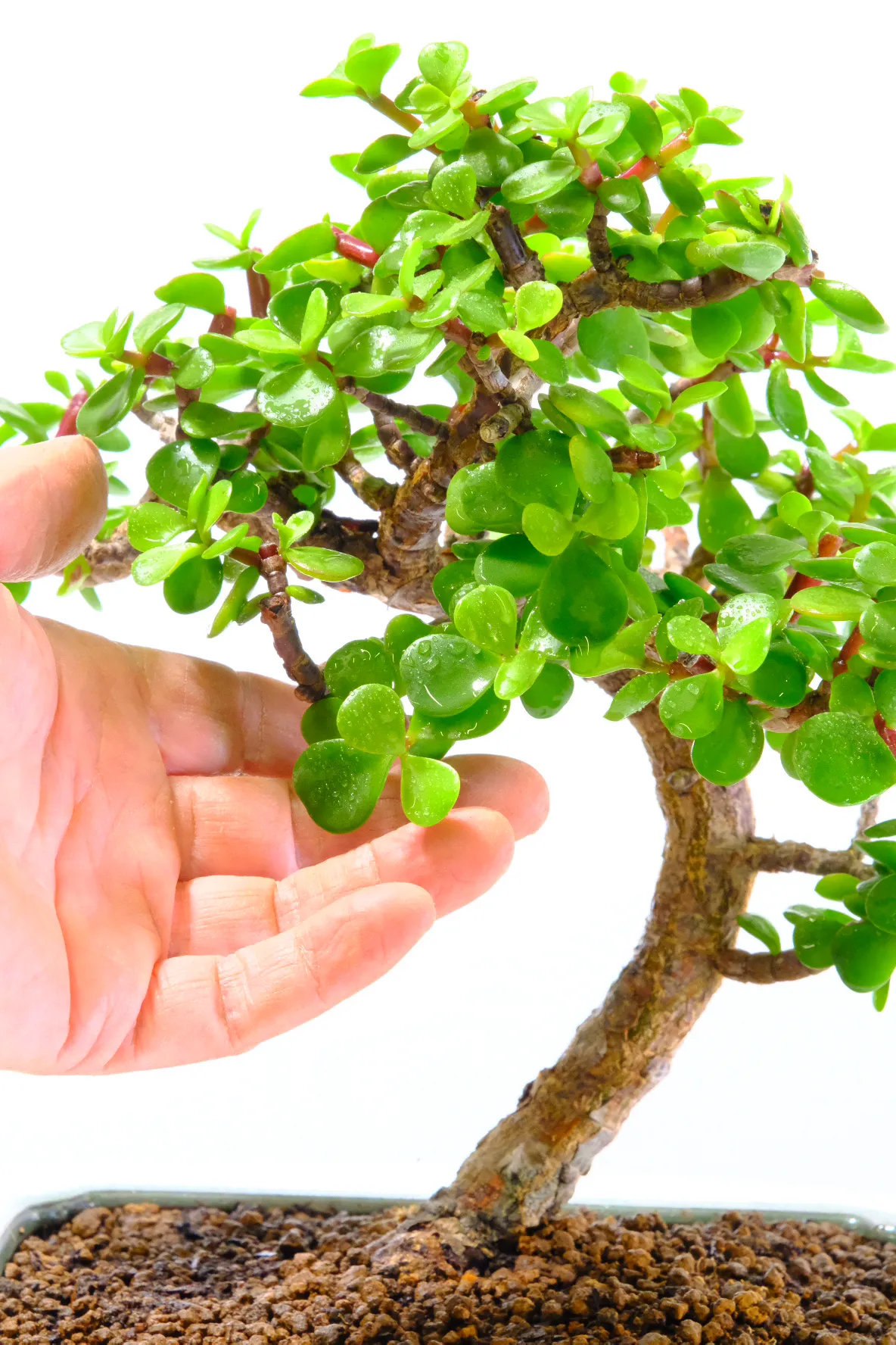 Because it stores water in its trunk and leaves, the Jade bonsai prefers drier soil and thrives in a warm room. It is easily propagated, making it a fun species for families and children, who can take cuttings and grow additional trees with ease.