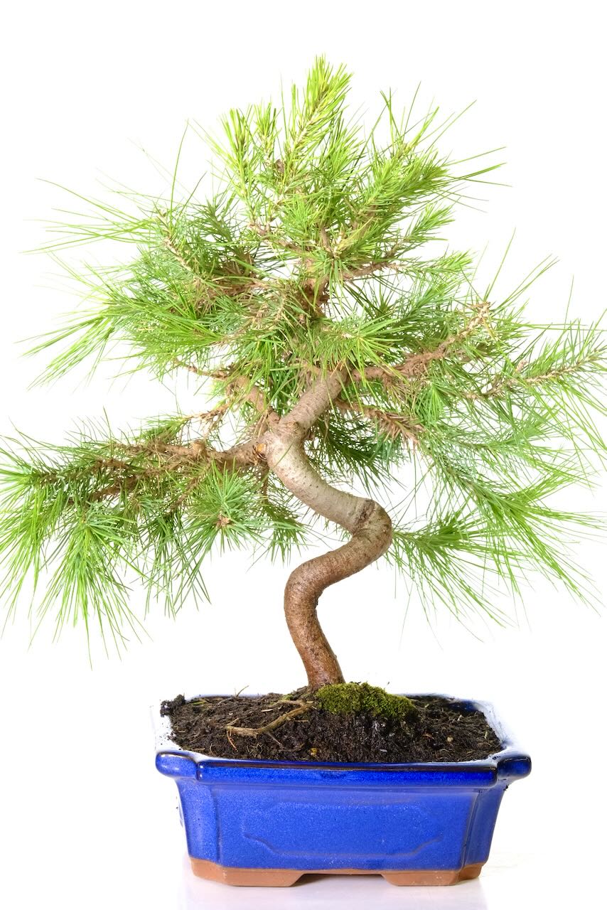 Discover the exquisite beauty of our 12-year-old Aleppo Pine (Pinus halepensis) outdoor bonsai. This evergreen treasure, potted in a vibrant blue ceramic bonsai pot, will infuse your outdoor space with a burst of striking colour. Admire the fresh green pine needles and the meticulously shaped trunk, while subtle root exposure adds an artistic touch. With its wonderful texture and excellent branch placement, this bonsai exemplifies the symbolic elegance of the Pinus halepensis species.