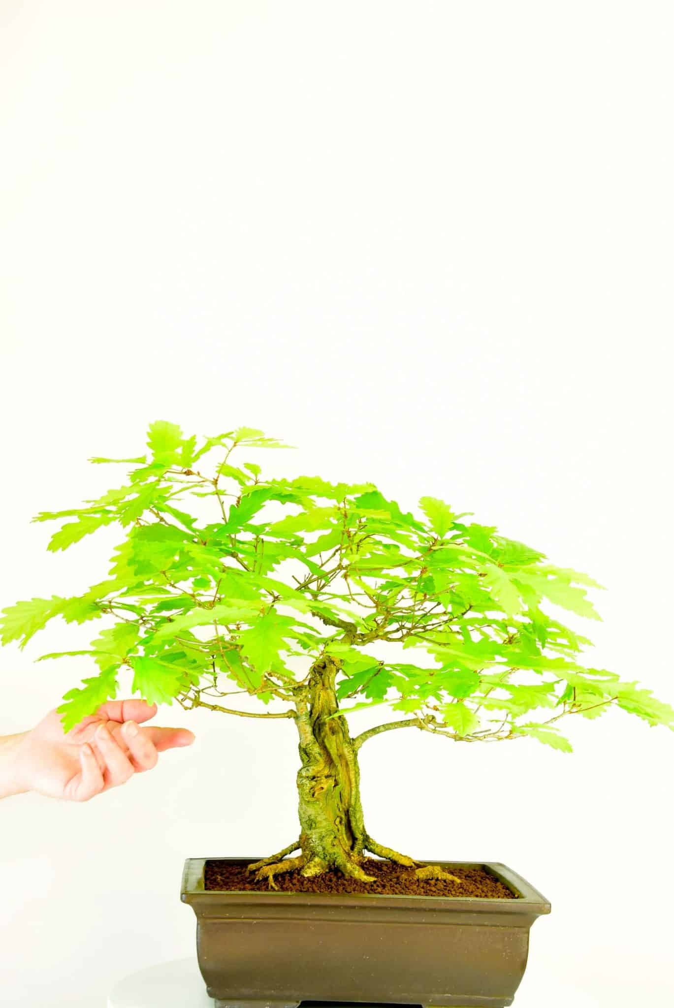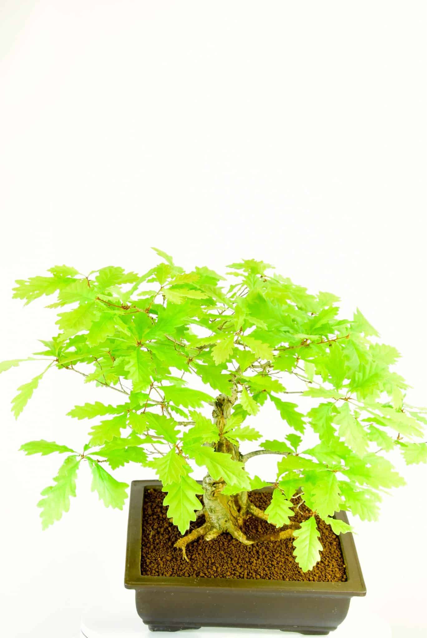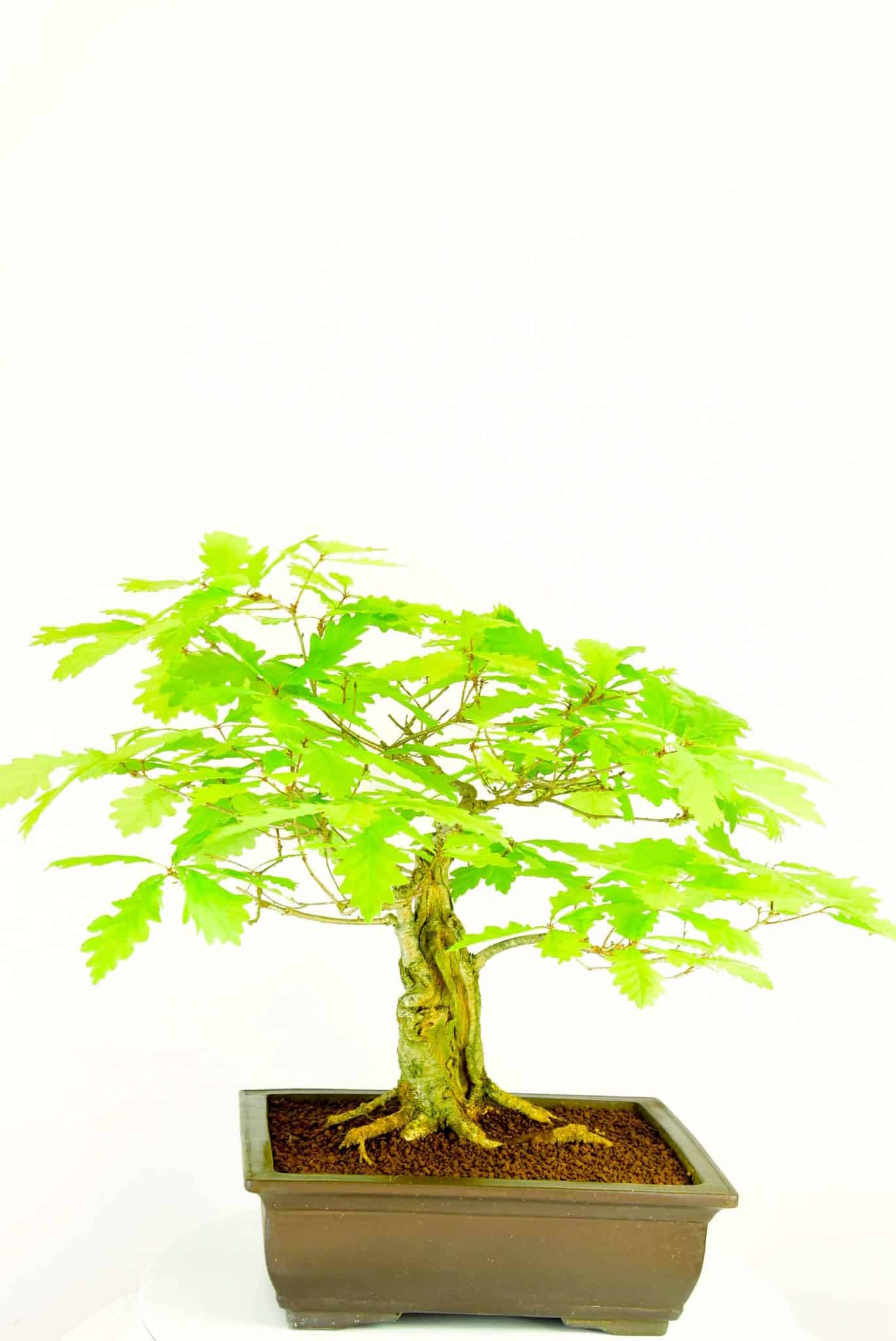 English Oak (Quercus robur)Although I love all trees, the English Oak holds a special place in my heart. It was a natural progression for me to specialise in them. Our English Oak bonsai are fantastic representations of these majestic native trees. They form powerful trunks and main branches and make incredible bonsai. On most of our oak bonsai the leaf size is down to about 5cm (2”) and on some of the older ones they are about 2.5cm (1”) They are easy to care for and extremely hardy. A must for all tree and bonsai lovers. Prune to shape.