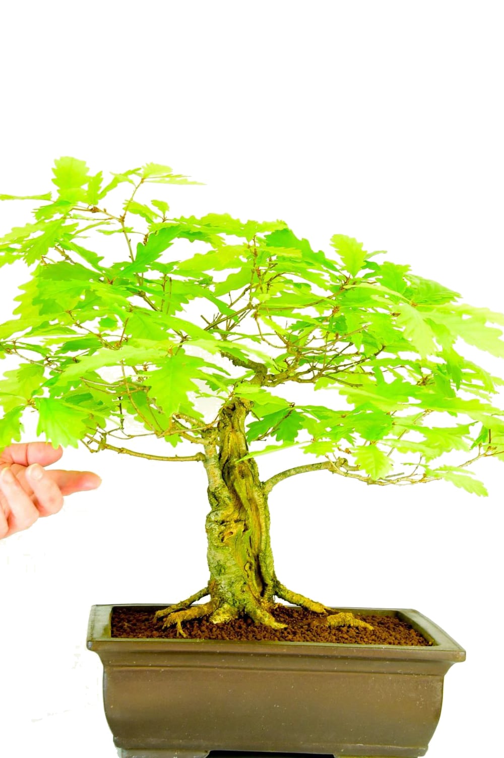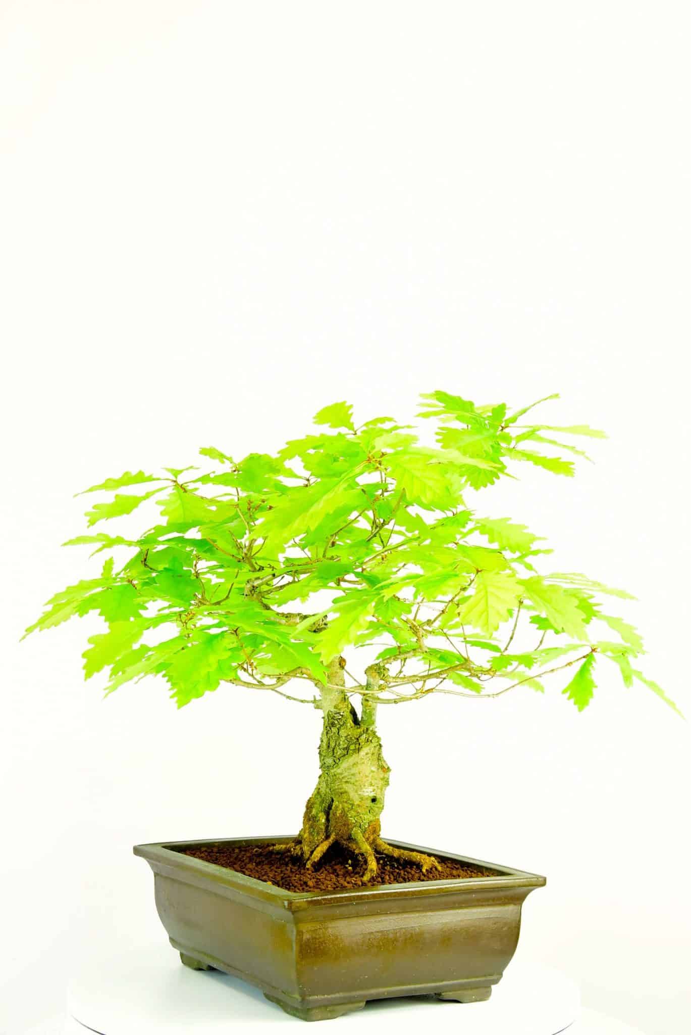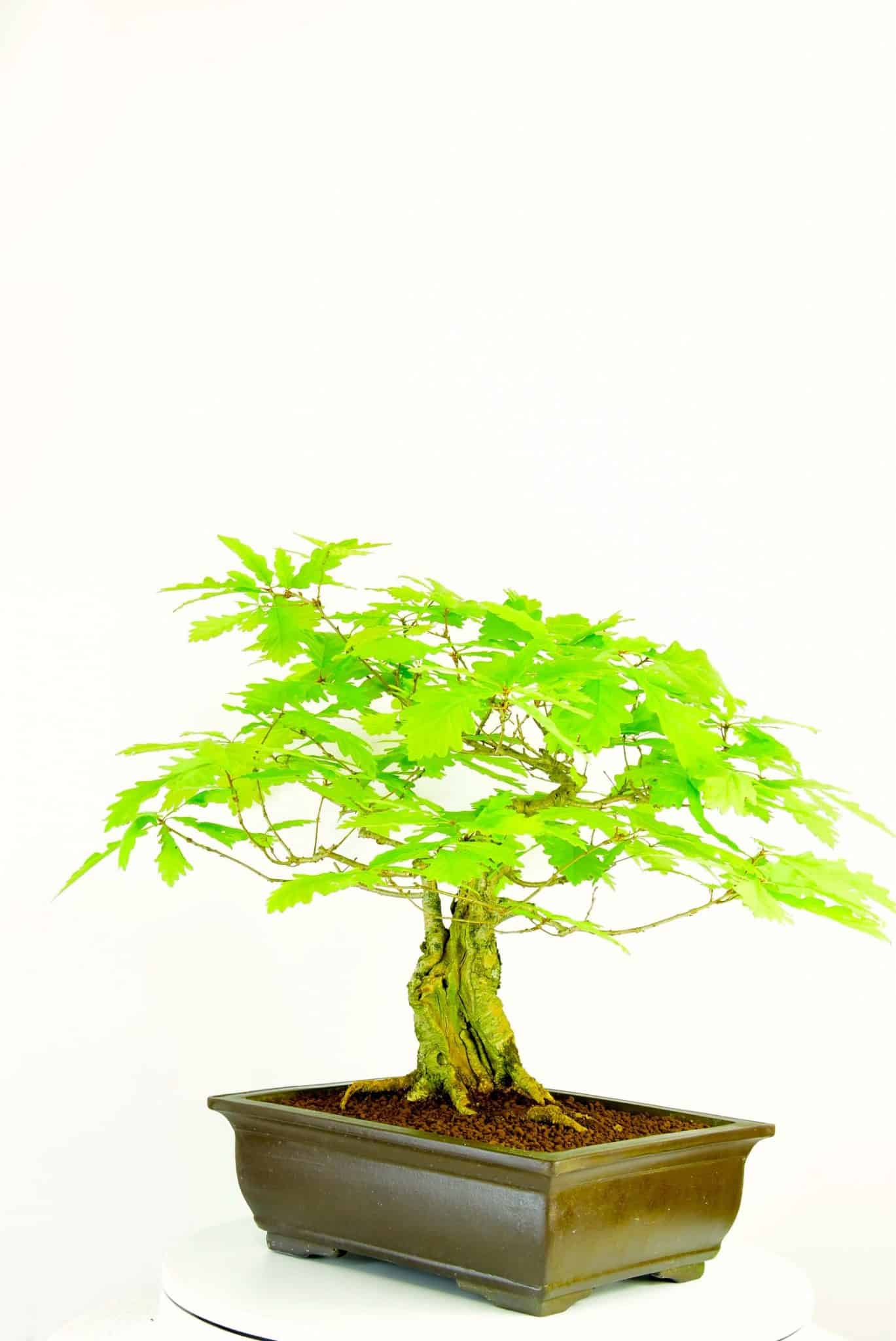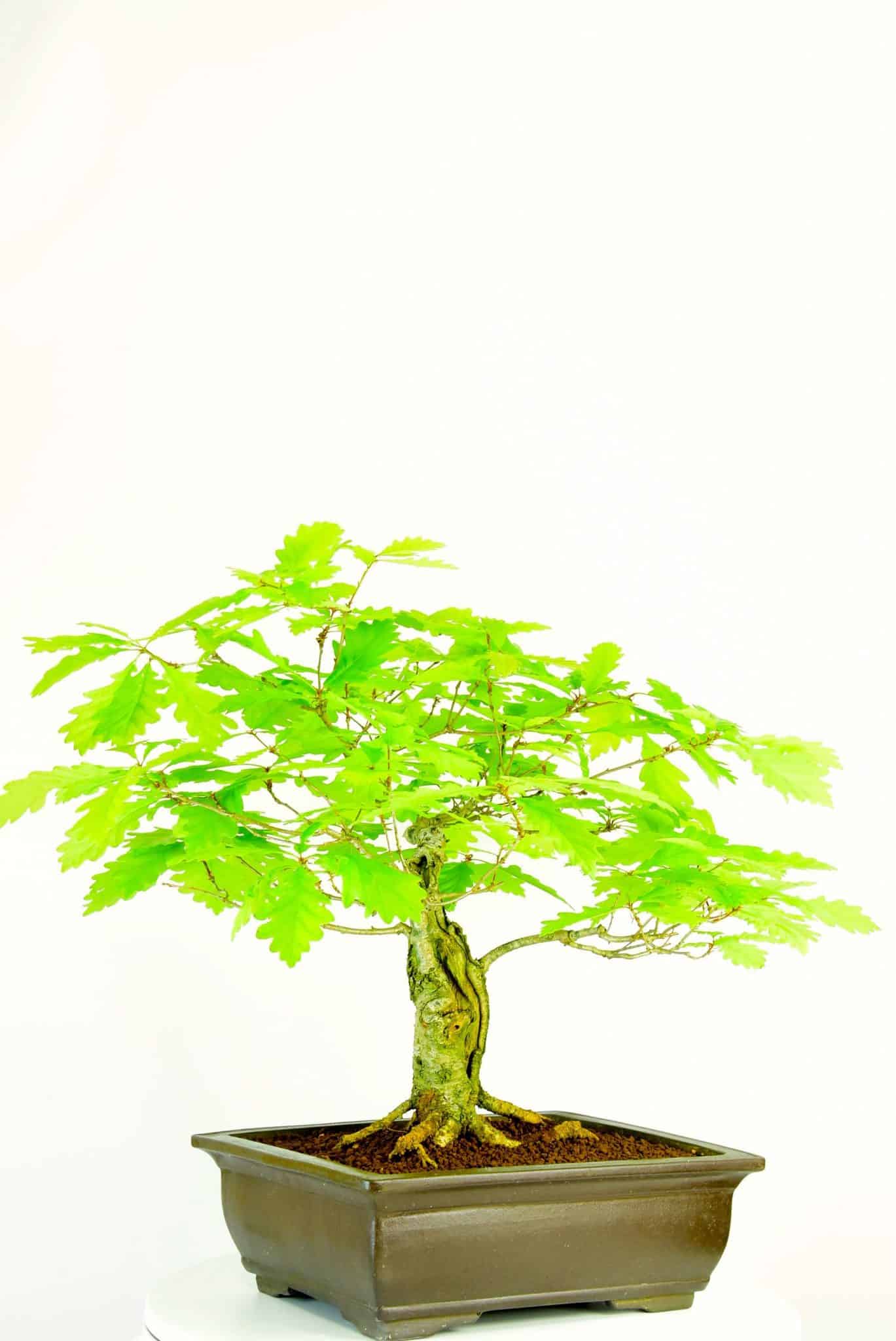 English Oak (Quercus robur)Although I love all trees, the English Oak holds a special place in my heart. It was a natural progression for me to specialise in them. Our English Oak bonsai are fantastic representations of these majestic native trees. They form powerful trunks and main branches and make incredible bonsai. On most of our oak bonsai the leaf size is down to about 5cm (2”) and on some of the older ones they are about 2.5cm (1”) They are easy to care for and extremely hardy. A must for all tree and bonsai lovers. Prune to shape.