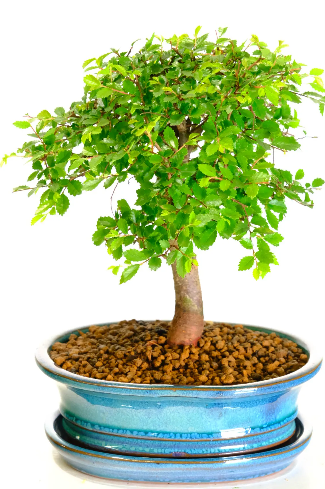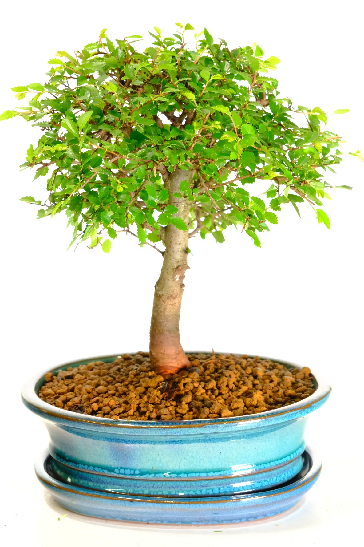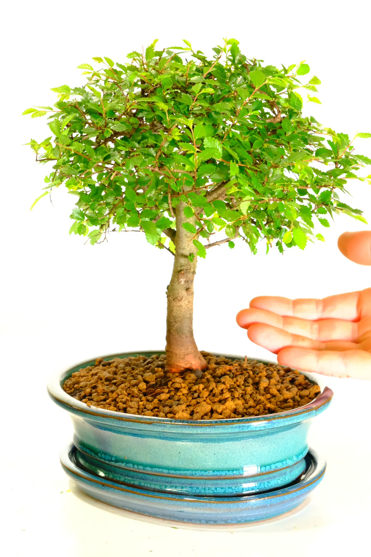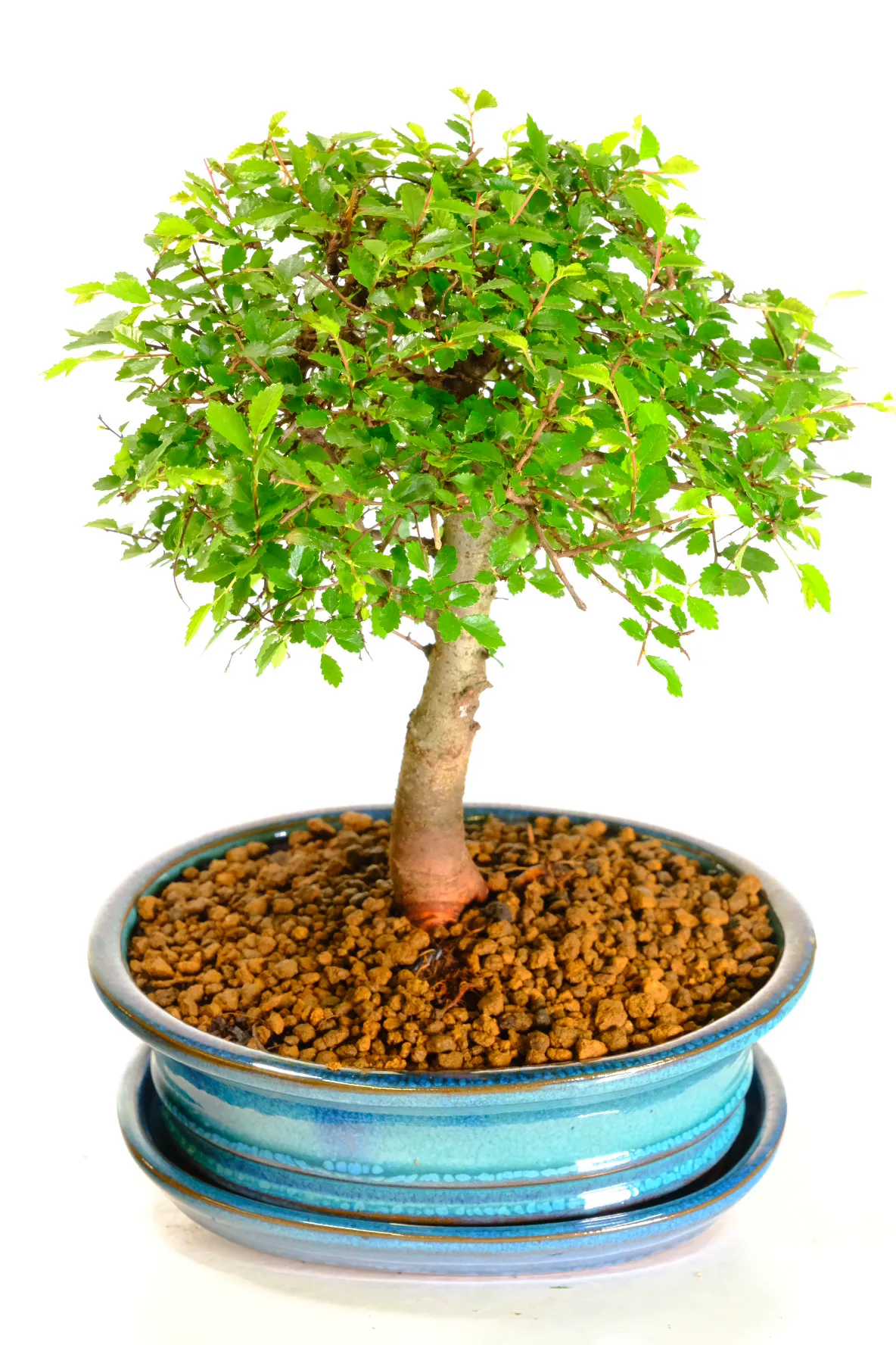 Your Chinese elm broom style bonsai will arrive fully planted in its teal blue ceramic pot and supplied with the matching ceramic drip tray, ready to display and enjoy from the moment it arrives.