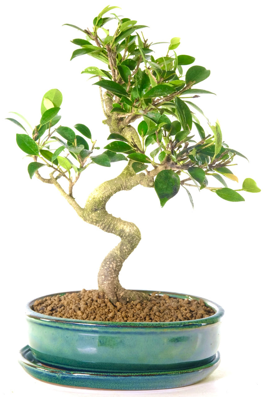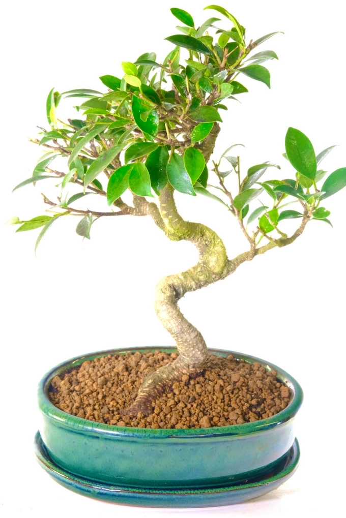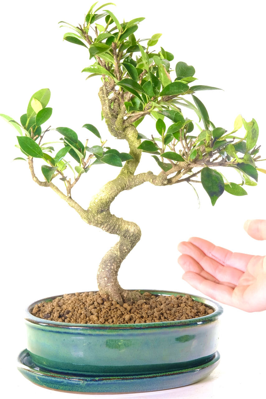 * A premium Fig bonsai in an ornate ceramic bonsai pot. The Fig is very easy to care for and will even tolerate rooms with poor light. It has lovely bright green glossy leaves.