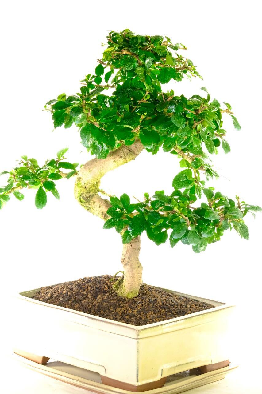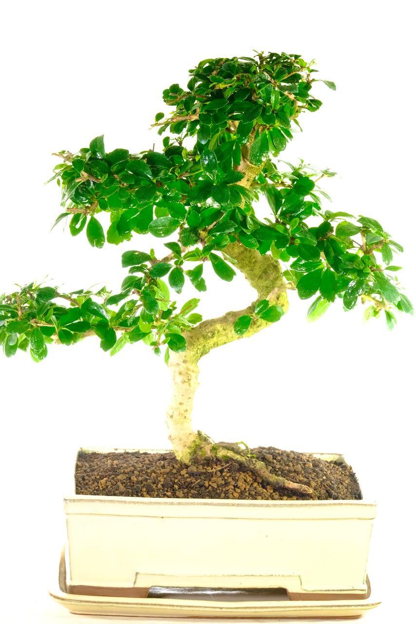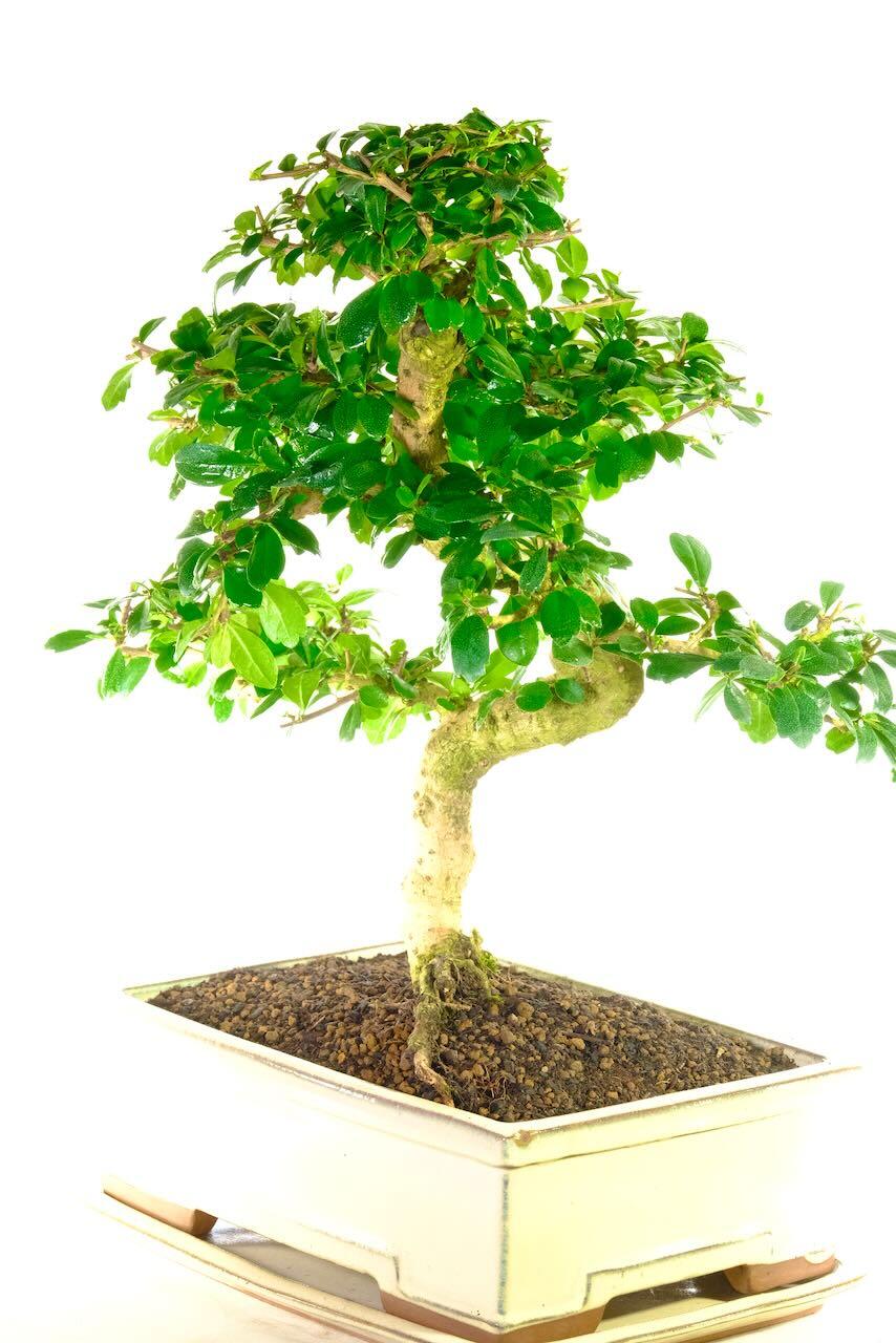 This picturesque bonsai seamlessly combines shape and branch arrangement, crafting a captivating display of elegance and form—perfect for beginners. The splendid trunk flows gracefully, infusing tranquility into any space. Presented in a tasteful soft cream ceramic bonsai pot and tray, this tree is an aesthetic beauty radiating cheerfulness, creating a lovely focal point.