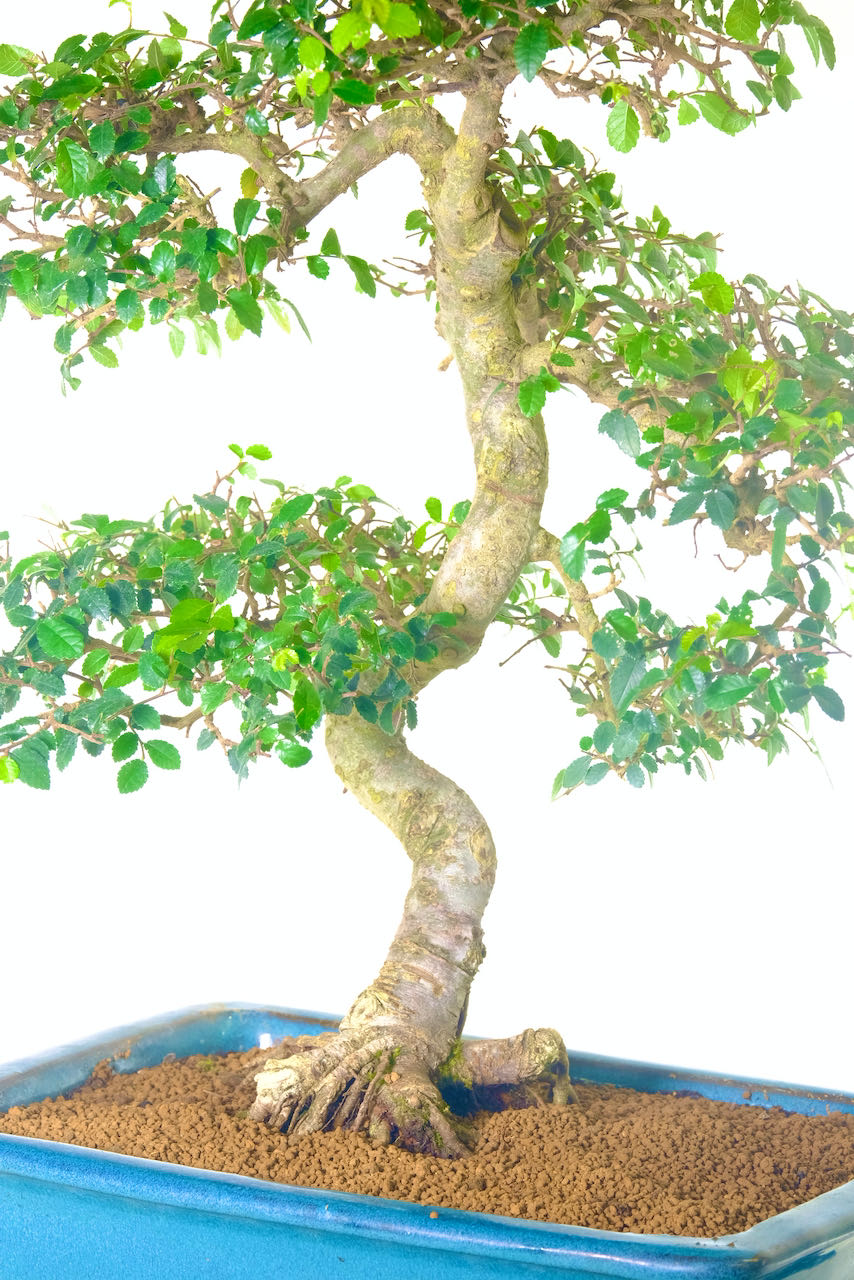A picturesque indoor Ulmus Parvifolia bonsai with powerful trunk flow and impressive structure.