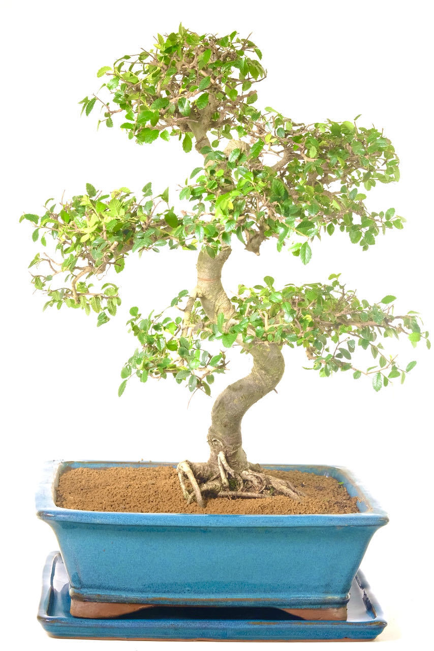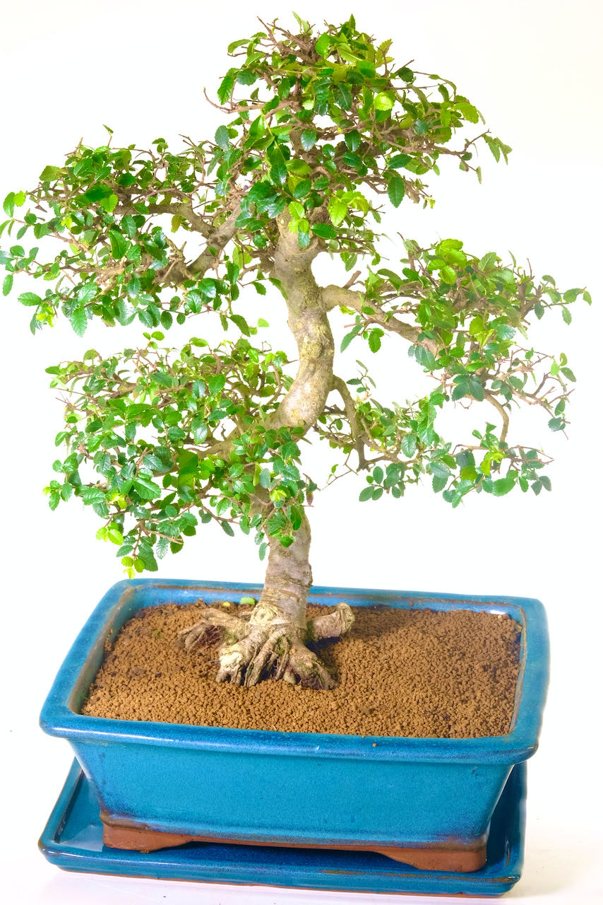 Potted in a rich teal blue ceramic bonsai pot with a matching drip tray, this bonsai is ideal for indoor display and makes a truly meaningful gift. The Chinese Elm symbolises inner strength, wisdom, intuition, and love, making it an excellent choice for special occasions and celebrations.