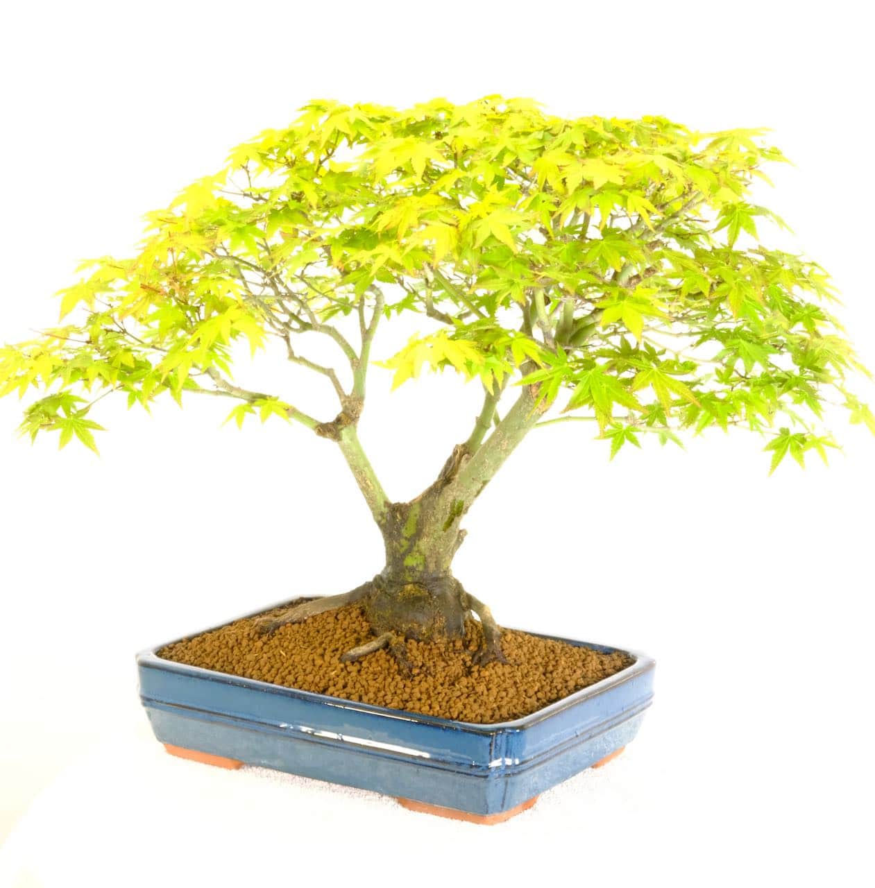 Japanese Maple (Acer palmatum)A bonsai classic. Fantastic spring and autumn foliage, displaying reds, yellows, oranges and greens throughout the growing season. They require a sheltered position in the garden protected from strong winds. When pruning please allow 1-2cm for die back and do not use wire to style your maple as the bark is very delicate and scars easily. A truly beautiful bonsai.