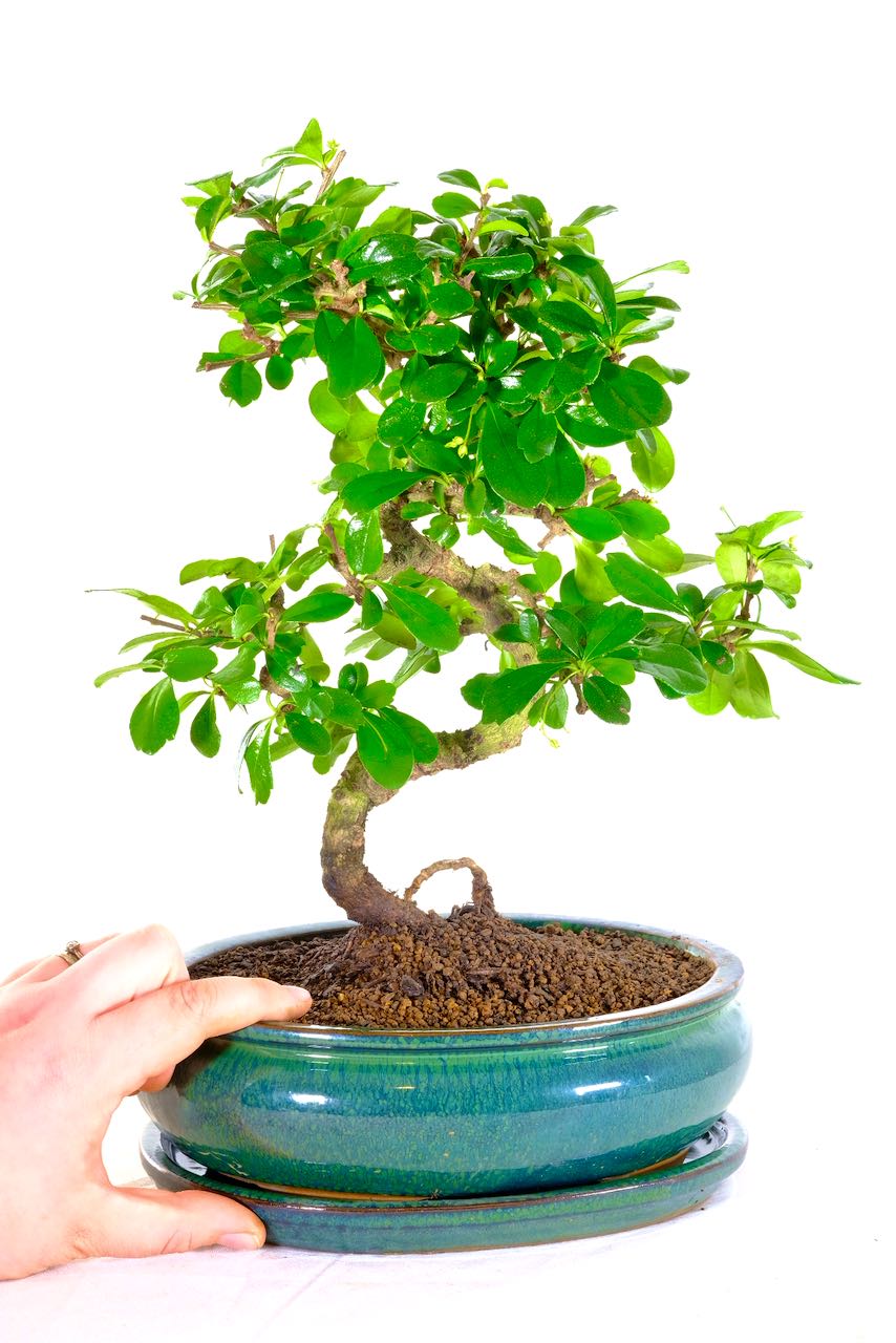 * Pot details: Forest green ceramic bonsai pot.