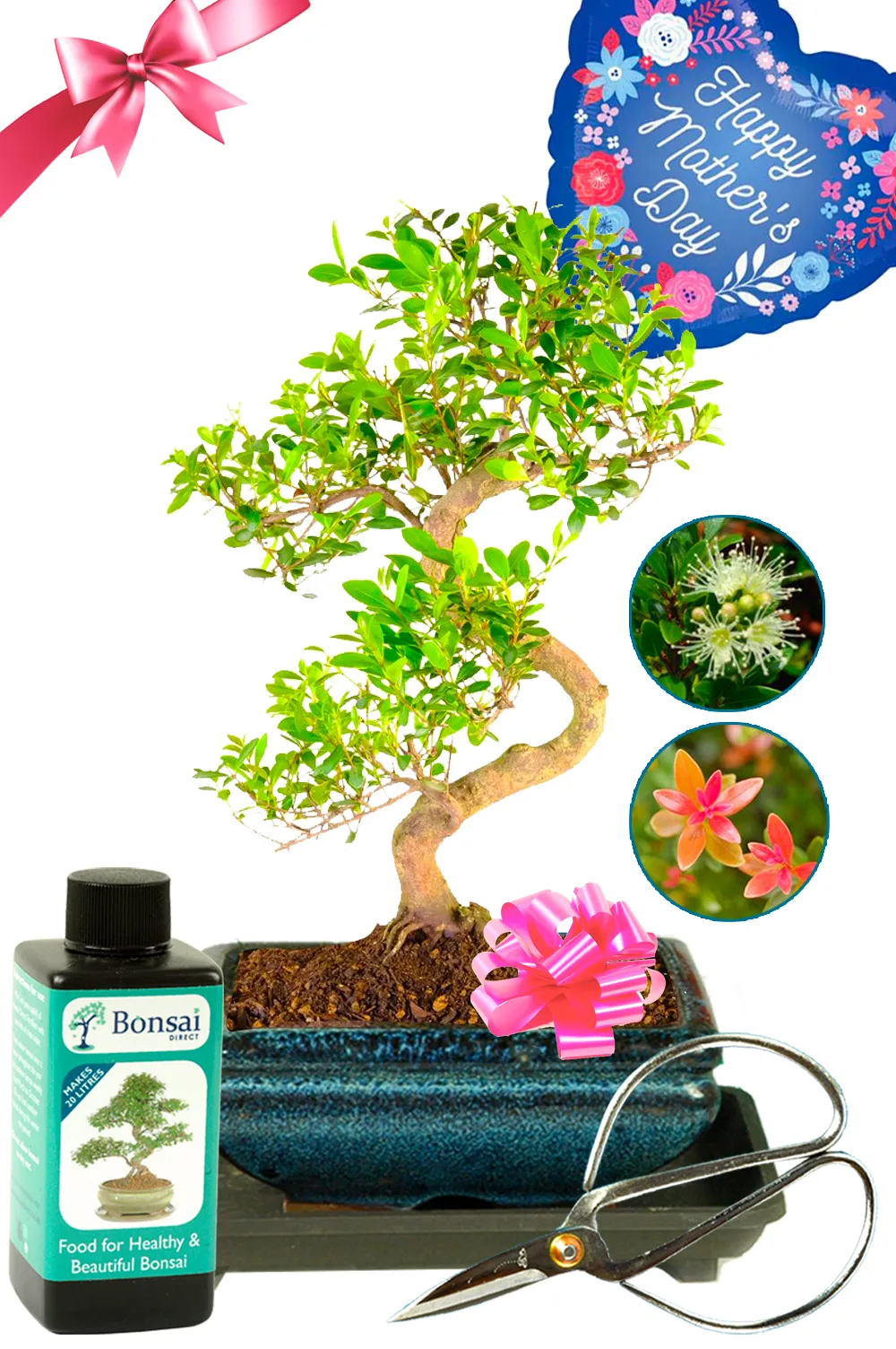 This Mother’s Day gift set includes a floral “Happy Mother’s Day” balloon to mark the occasion. We also include a beginner care kit with bonsai fertiliser and pruning scissors, so ongoing care feels easy and enjoyable.