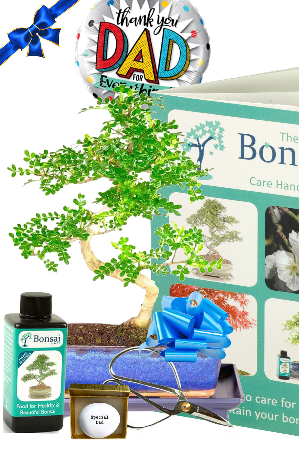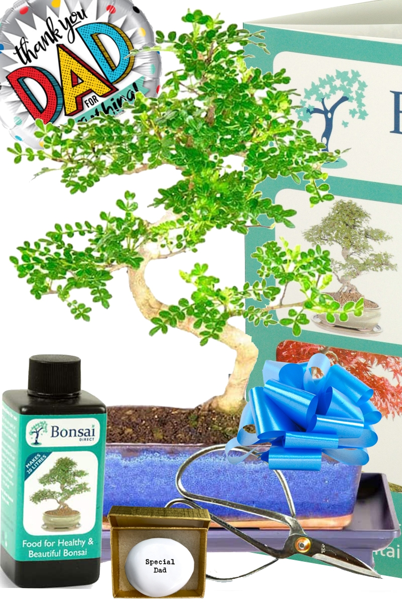 Introducing our delightful Aromatic Pepper Father’s Day plant gift. This outstanding gift features the captivating Aromatic Pepper bonsai, renowned for its invigorating and zesty fragrance. Whether Dad is a seasoned enthusiast or a newcomer, he’ll appreciate this 12-year-old Zanthoxylum piperitum bonsai with its captivating twisty form and exceptional features. Presented in a classic navy blue ceramic pot with a matching dark-coloured drip tray, this bonsai gift set includes all essentials for easy care! Dad will find a bottle of fertiliser and a pair of scissors to ensure his bonsai thrives. Adding a delightful touch to Father’s Day is the “Special Dad” polished pebble and a cheerful Father’s Day balloon. Additionally, he will receive a copy of our Bonsai Direct care handbook to guide him in nurturing his bonsai. Make this Father’s Day truly unforgettable with our unique and aromatic bonsai plant gift!
