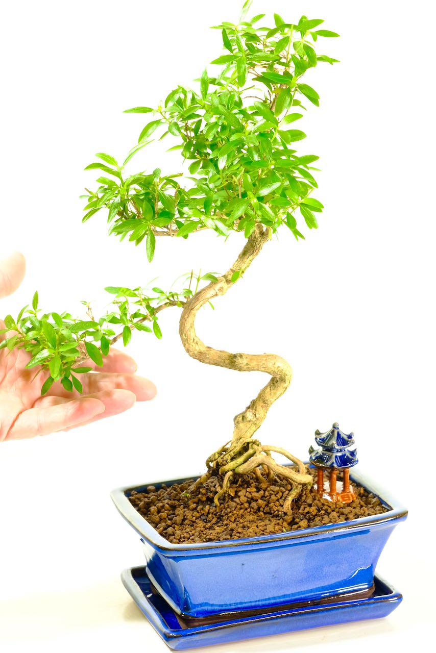 Place in bright light. Water when the soil begins to dry. Apply bonsai fertiliser weekly to encourage new growth and flowers. This bonsai will also appreciate being misted with Bonsai Mist twice weekly. This foliar feeds and conditions the leaves and helps maintain humidity.