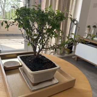 As summer arrives, the bonsai transitions into a verdant display, showcasing lush and vibrant green leaves. Its alluring traditional cherry tree structure, coupled with its open habit, adds to its timeless beauty and allure.