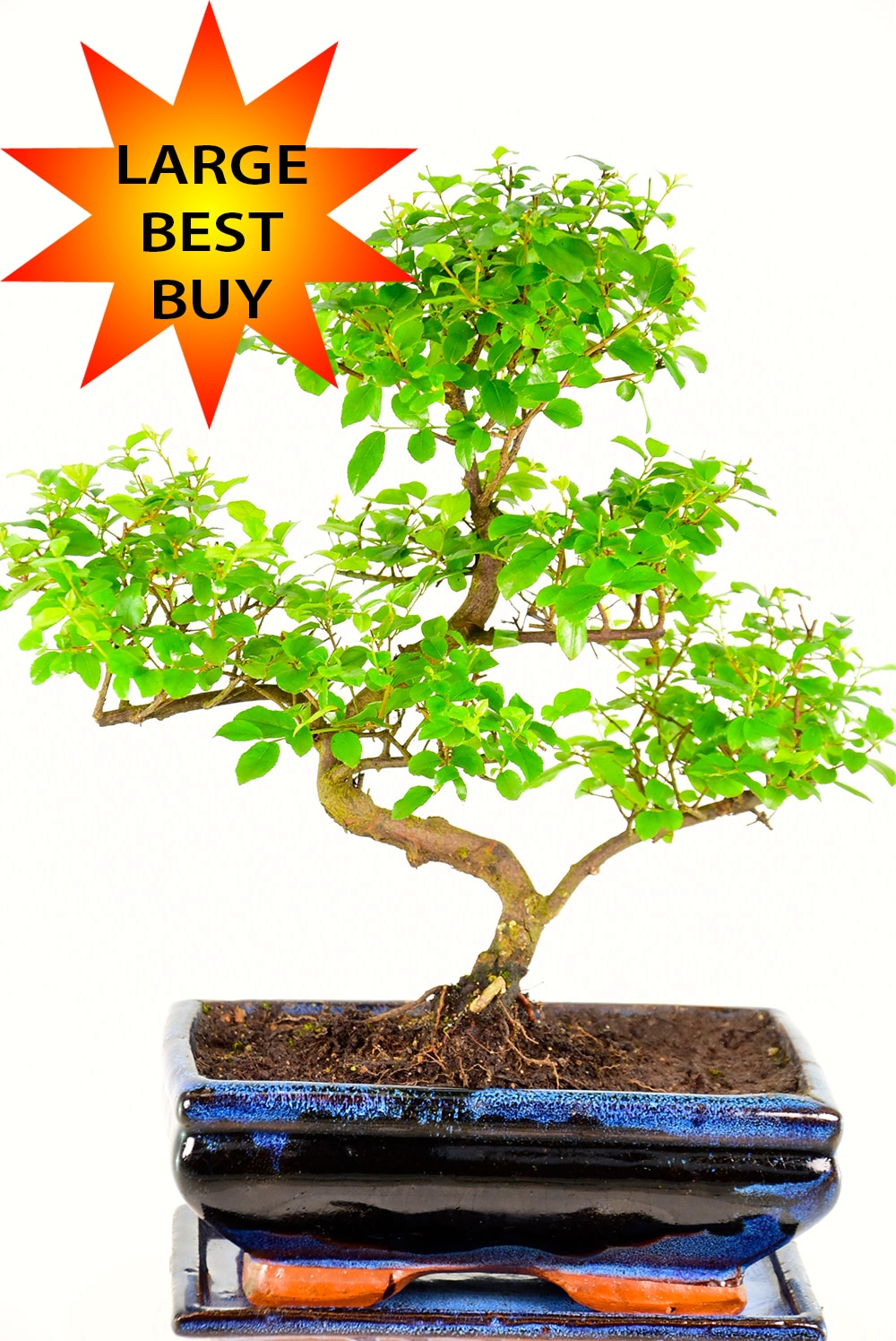 ✔ Potted in a classic blue ceramic bonsai pot with drip tray