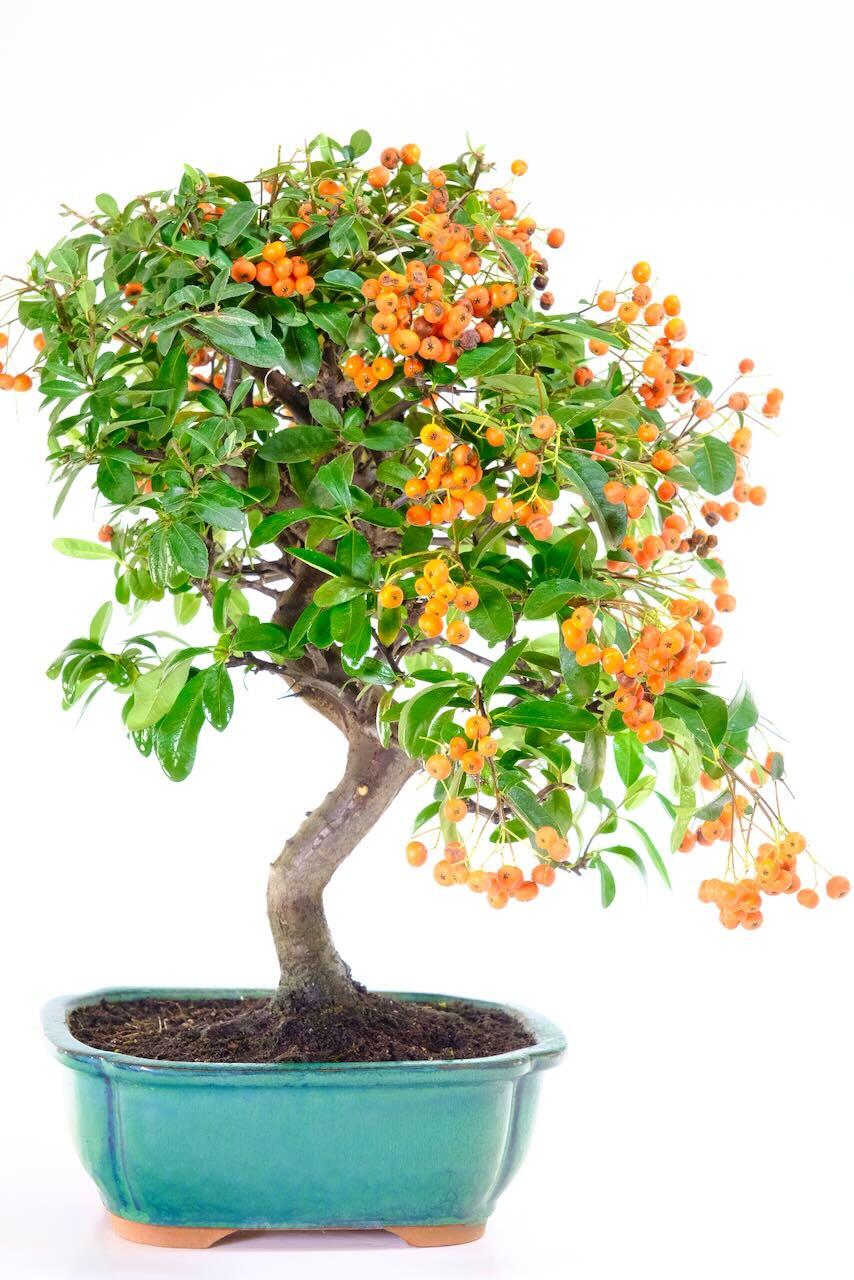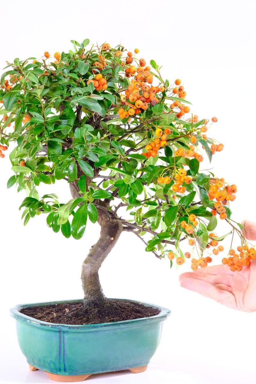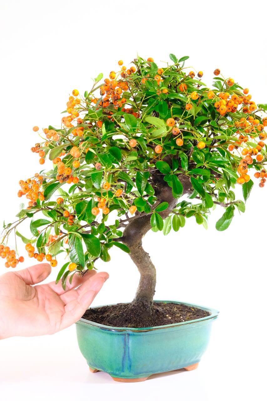 17-Year-Old Flowering Pyracantha Bonsai Tree | Fiery Orange Winter Berries & Stunning Twisty Trunk in Forest Green Pot