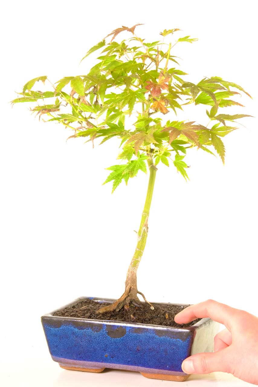 It makes a wonderful outdoor bonsai tree and is potted into a blue ceramic bonsai pot, which brings out the colour in the foliage.
