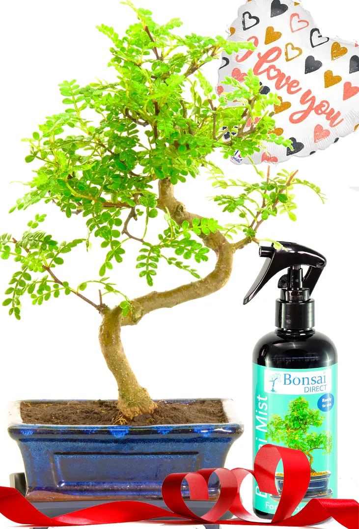 This zesty Aromatic Pepper bonsai is a beautiful choice for romantic gift ideas. Glossy green leaves release a fresh zesty fragrance when gently pruned. The elegant S-shaped trunk adds graceful character. Ideal for indoor spaces and easy to enjoy. Includes a drip tray, bonsai mist spray to foliar feed the leaves, and “I Love You” balloon. A meaningful bonsai symbolising healing, protection, and affection.