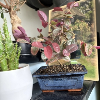 “This one is such a joy to have around—those colours are just wow! The pink flowers feel like little surprises when they pop out, and the purple leaves add a really modern, stylish twist to the bonsai. Plus, they’re very easy to care for, unique and love cool rooms, which is a bonus if you don’t have a warm house. You can keep them outside throughout the year, but they need a cool room over winter🌿”