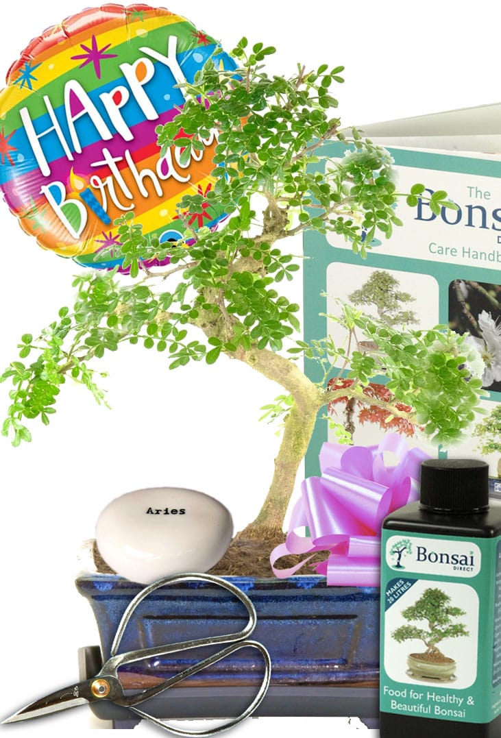 The Aromatic Pepper bonsai isn’t just beautiful – it also carries special meanings related to purification, healing, and protection, giving your gift depth and significance. To add a personal touch, the gift comes with a star sign stone, linking it to astrology themes and making it a stylish choice for astrology enthusiasts. Adding a festive touch is the retro “Happy Birthday” balloon! To protect surfaces and add a bit of moisture, a dark-coloured tray is included. Especially designed for beginners, we’ve included a pair of bonsai scissors and a bottle of feed! And don’t forget to explore the Bonsai Direct care handbook that accompanies your purchase.