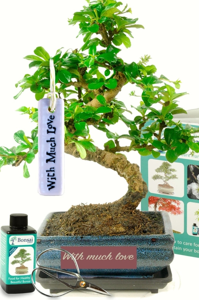 This bonsai is the beautiful Oriental Tea Tree (Carmona microphylla), symbolising courage and heart – The perfect bonsai kit as a gift to symbolise love & devotion.