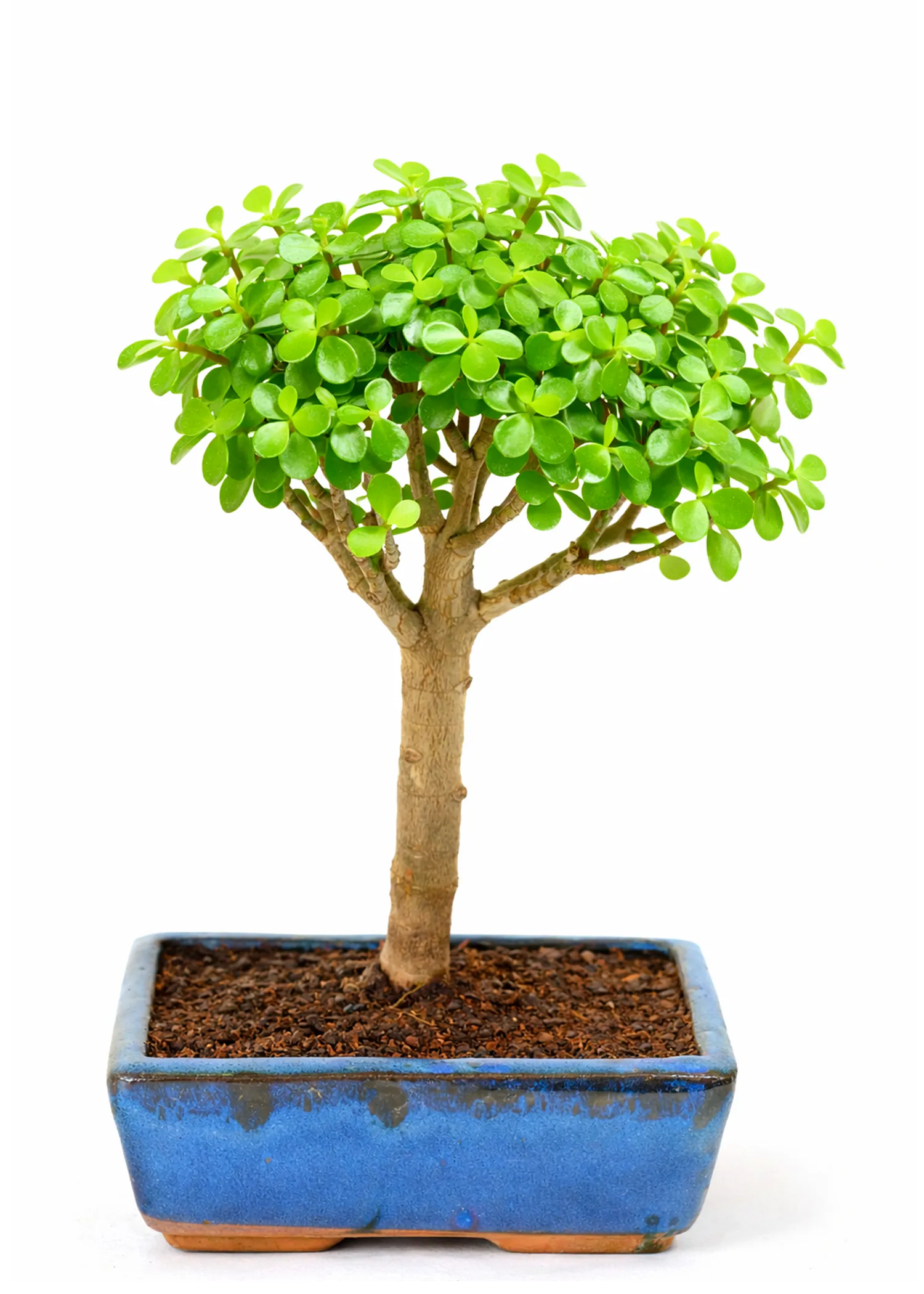 Mid-Sized Woodland-Style Jade Bonsai (Portulacaria afra) in Blue Ceramic Pot