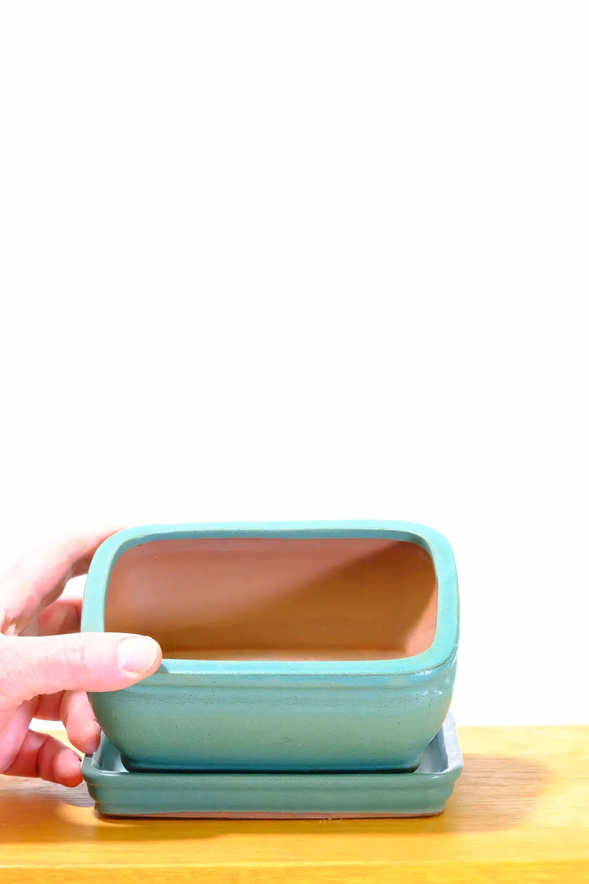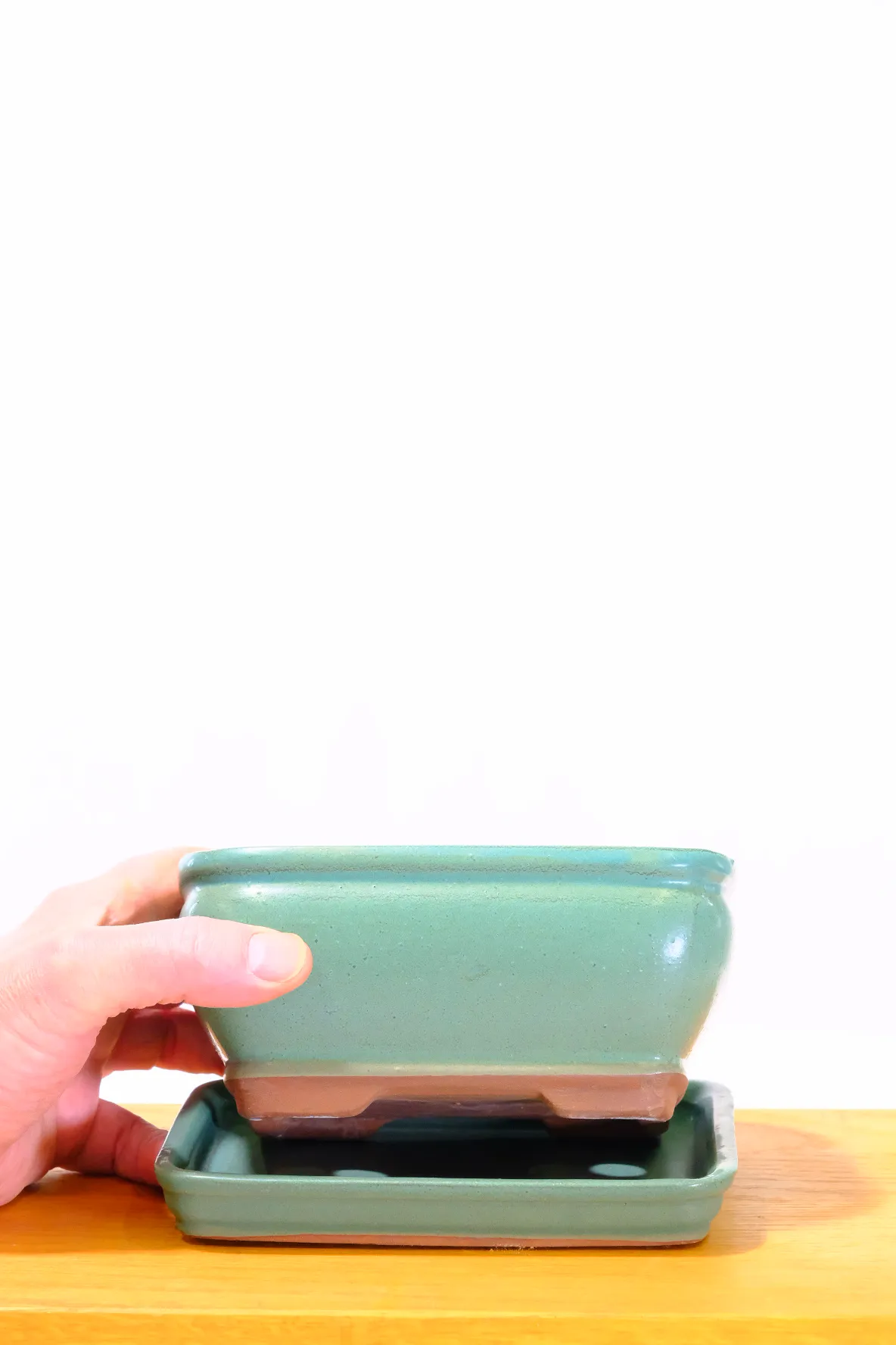 16cm Matte Jade Green Rectangular Bonsai Pot with Rounded Corners