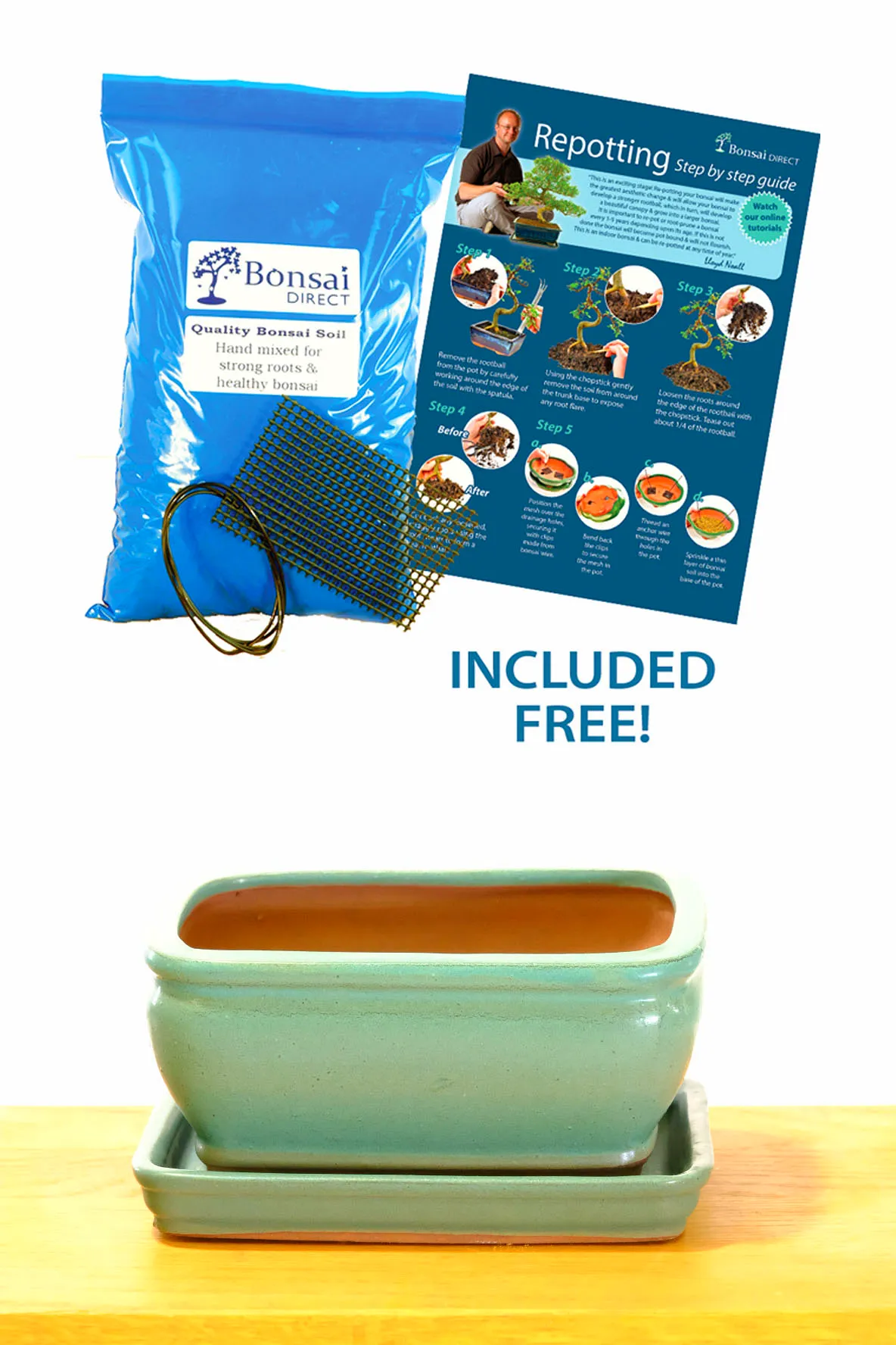 Our bonsai potting kits include everything you need for successful repotting: