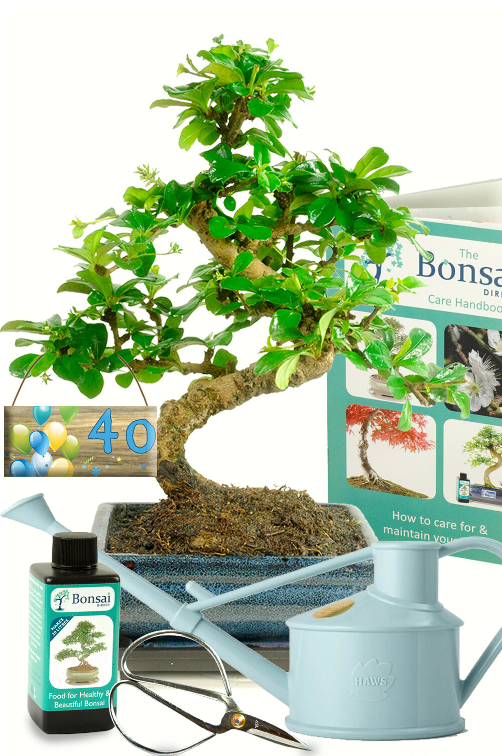 40th Birthday Gift Ideas | Flowering Fukien Tea Bonsai Starter Kit with Personalised Age Tag