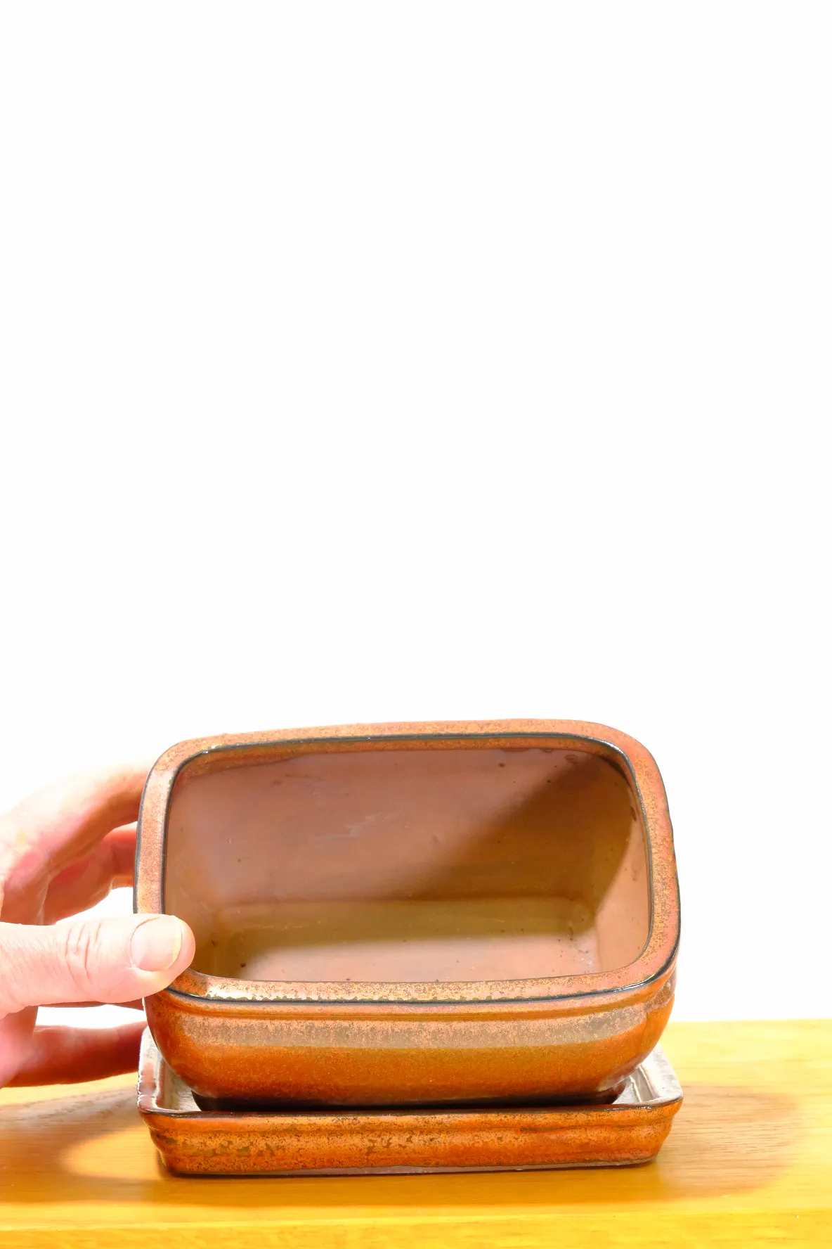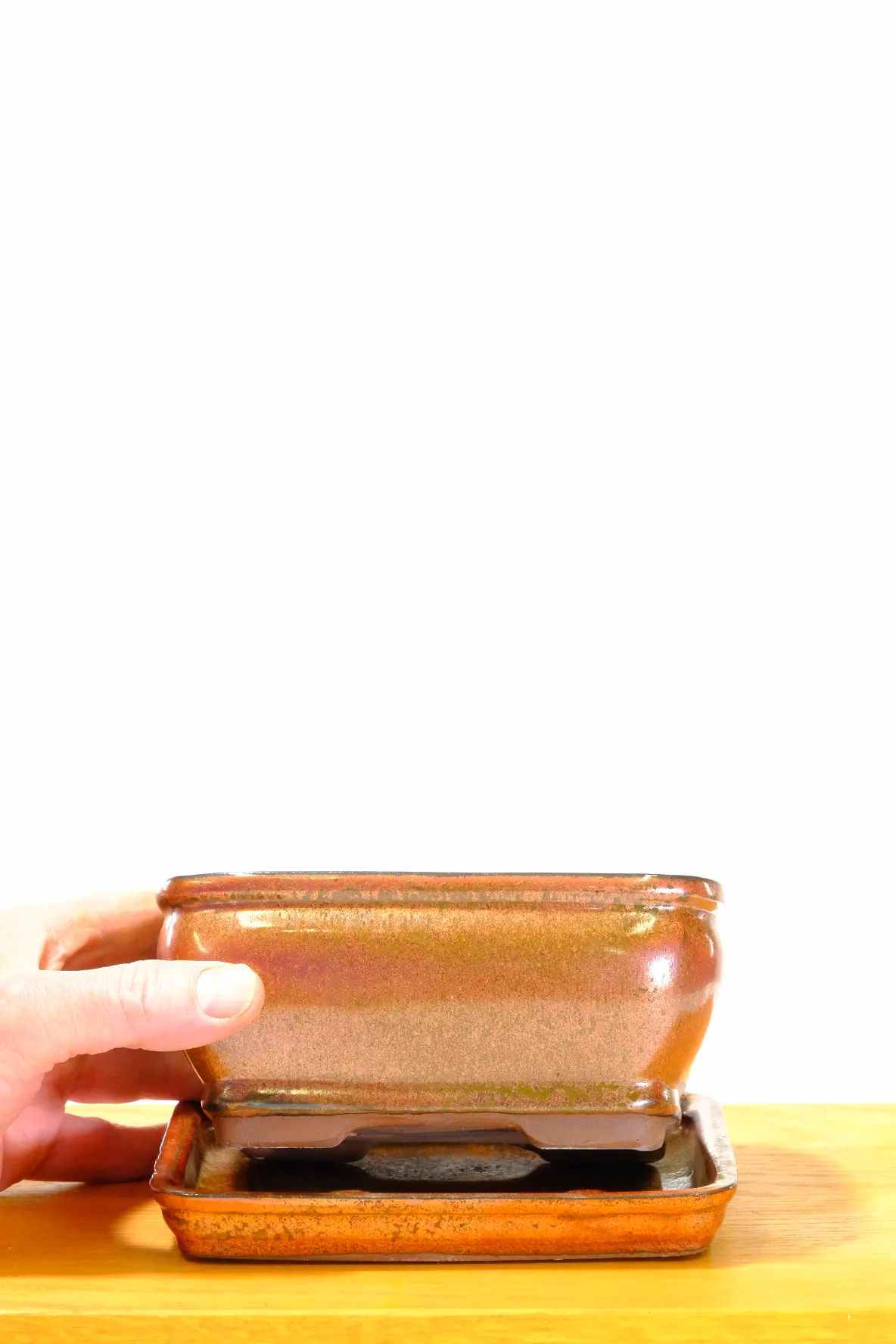 16cm Mottled Sparkly Bronze Rectangular Bonsai Pot with Rounded Corners