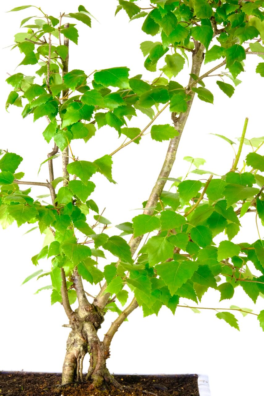 Silver birch trees are renowned for their striking beauty and elegance, and this 13-year-old Silver Birch bonsai is no exception. With a fresh canopy and unique trunk featuring a multi-stem design and gnarly root features, this bonsai boasts immense character and charm.