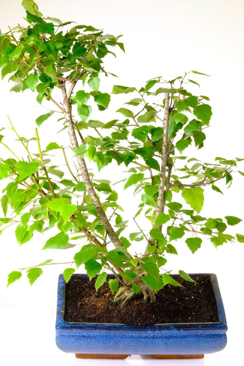 Pretty Multi-Trunked Large & Impressive Silver Birch (Betula Pendula) bonsai for sale in midnight blue pot. The Silver Birch is an extremely elegant tree in natural design renowned for its beautiful silvery bark. It demonstrates a graceful beauty with abundant attributes. EXCELLENT VALUE BONSAI BARGAI.