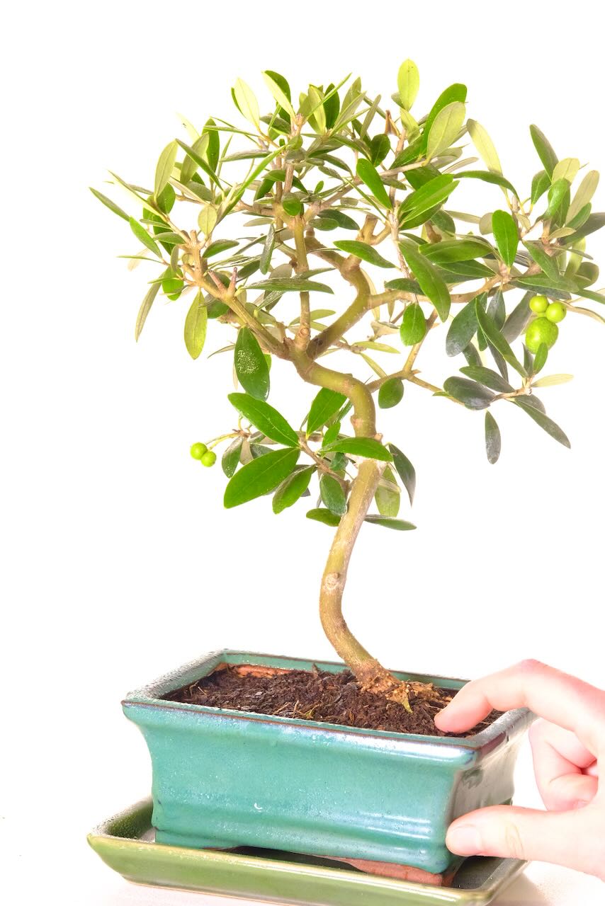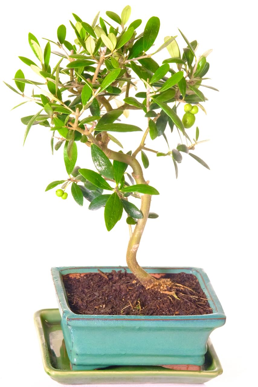 Olive Tree Bonsai (Olea Europaea) in Green Ceramic Pot