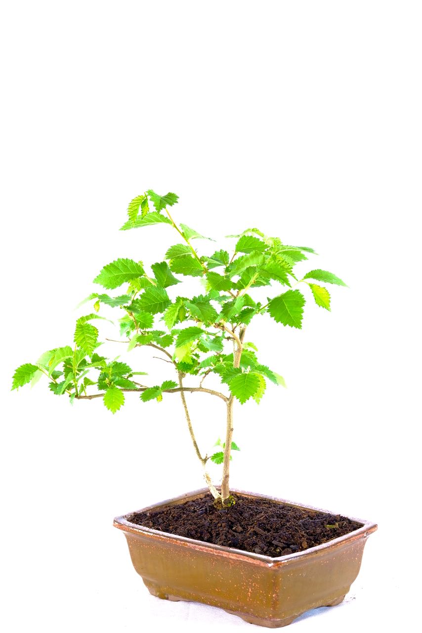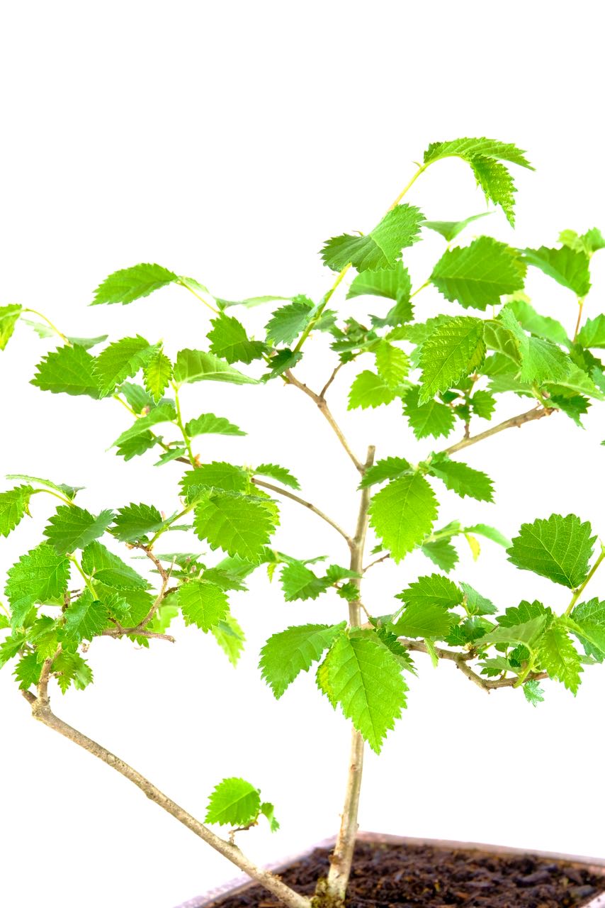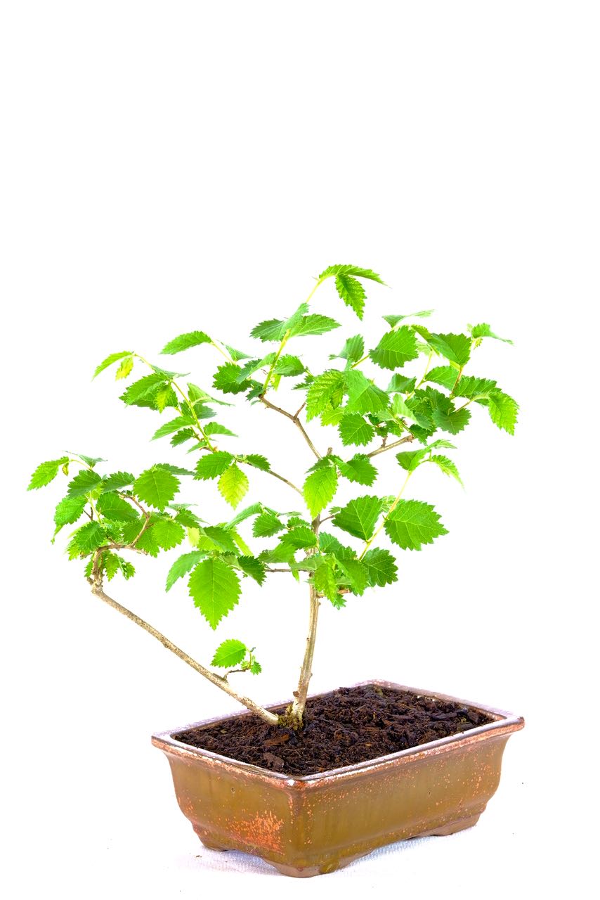 Beautiful Elm (Ulmus species) outdoor bonsai tree with serrated leaves.