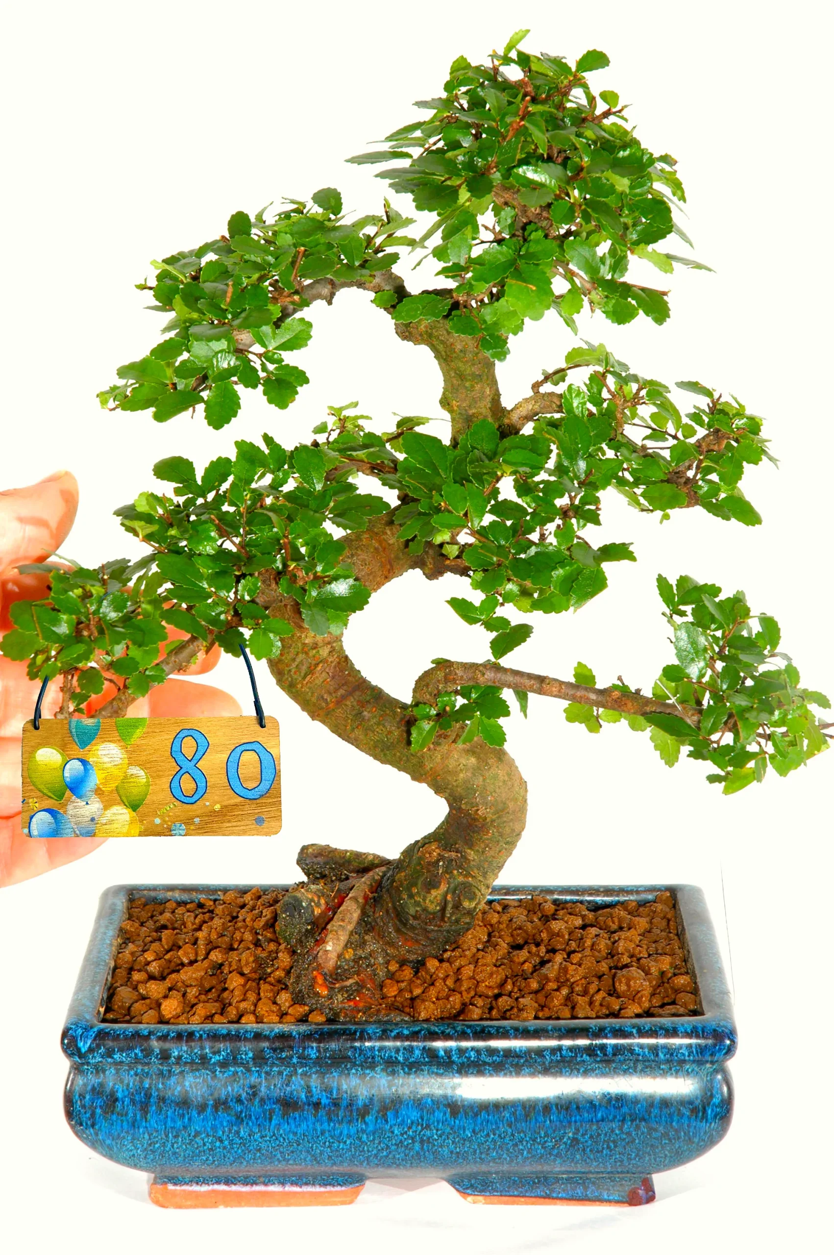 Every milestone bonsai includes a wooden balloon-design tag to mark the occasion. It adds a cheerful and celebratory touch while remaining tasteful and understated. The symbolism of the Chinese Elm makes this gift even more meaningful. This species represents inner strength, intuition, wisdom and love. All fitting sentiments for stepping confidently into the next decade of life.