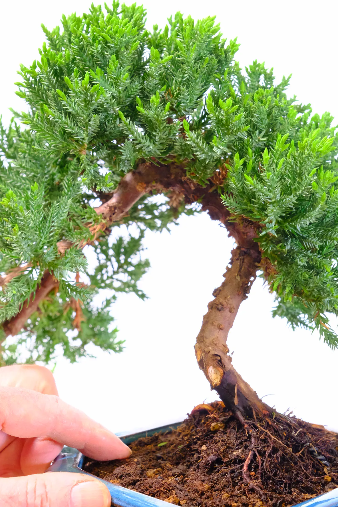 Because of this natural growth habit, the species adapts extremely well to semi cascade bonsai designs. Its flexible branches allow elegant shaping, while the fine evergreen foliage forms compact layered pads that highlight the flowing structure of the tree.
