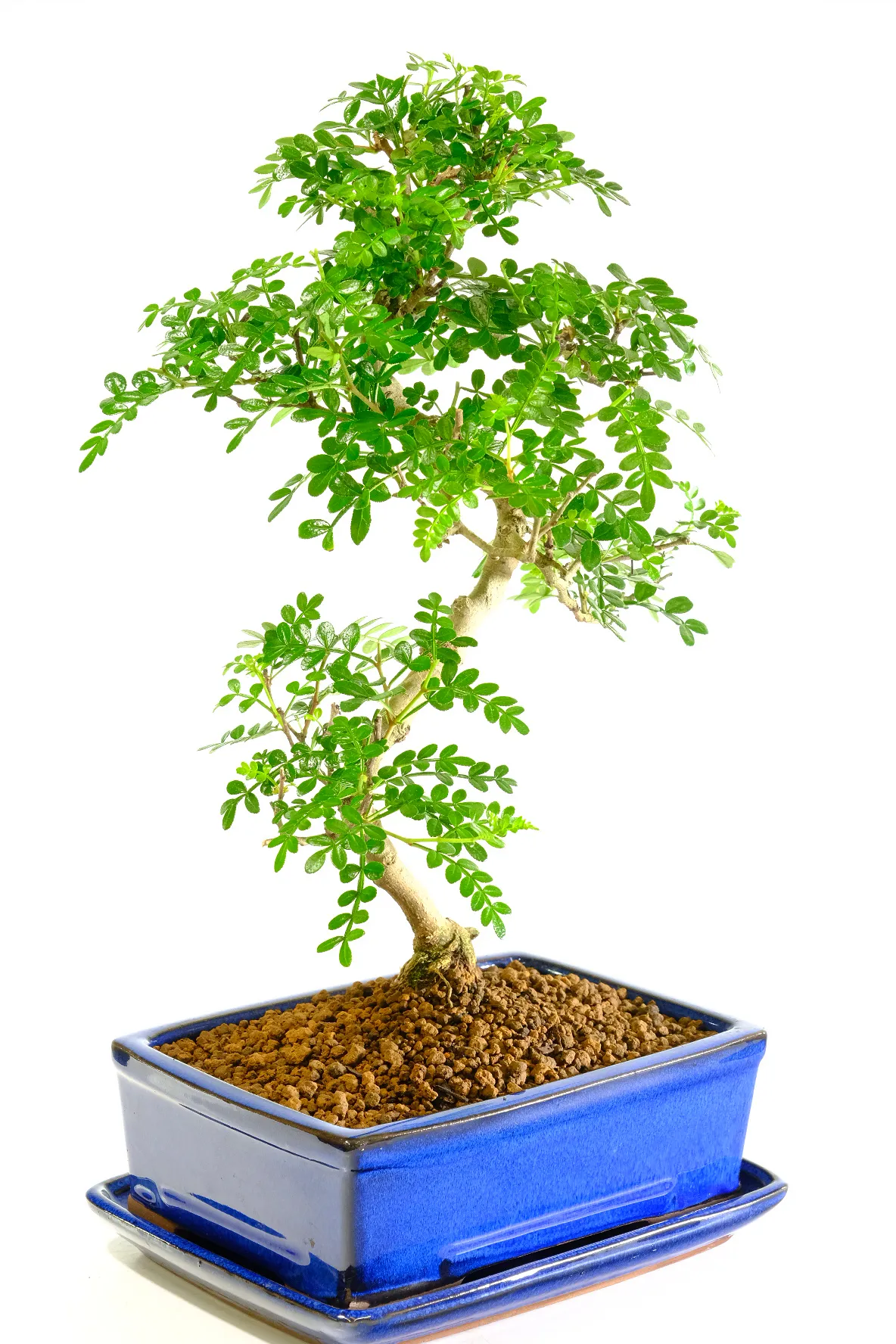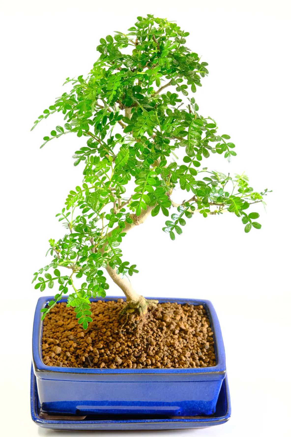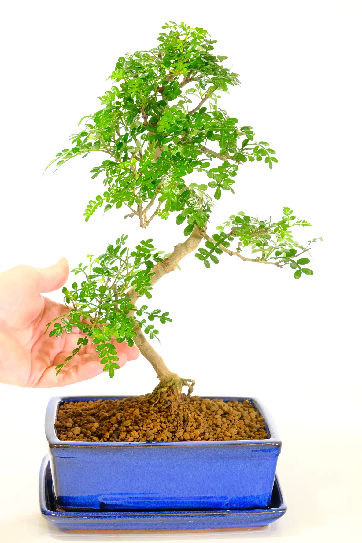 Enjoy a truly sensory bonsai with this beautifully shaped Zanthoxylum tree. Its fresh green leaflets and elegant twisty trunk create a natural, balanced look, while gently brushing or pruning the foliage releases a distinctive zesty fragrance. A few exposed roots at the base add character and maturity. You will receive the exact tree shown, carefully potted in a rich royal blue bonsai pot with a matching ceramic drip tray. Grown and nurtured by Bonsai Direct, a family-run nursery committed to quality and sustainability, this Zanthoxylum bonsai is ready to bring life and scent into your space.