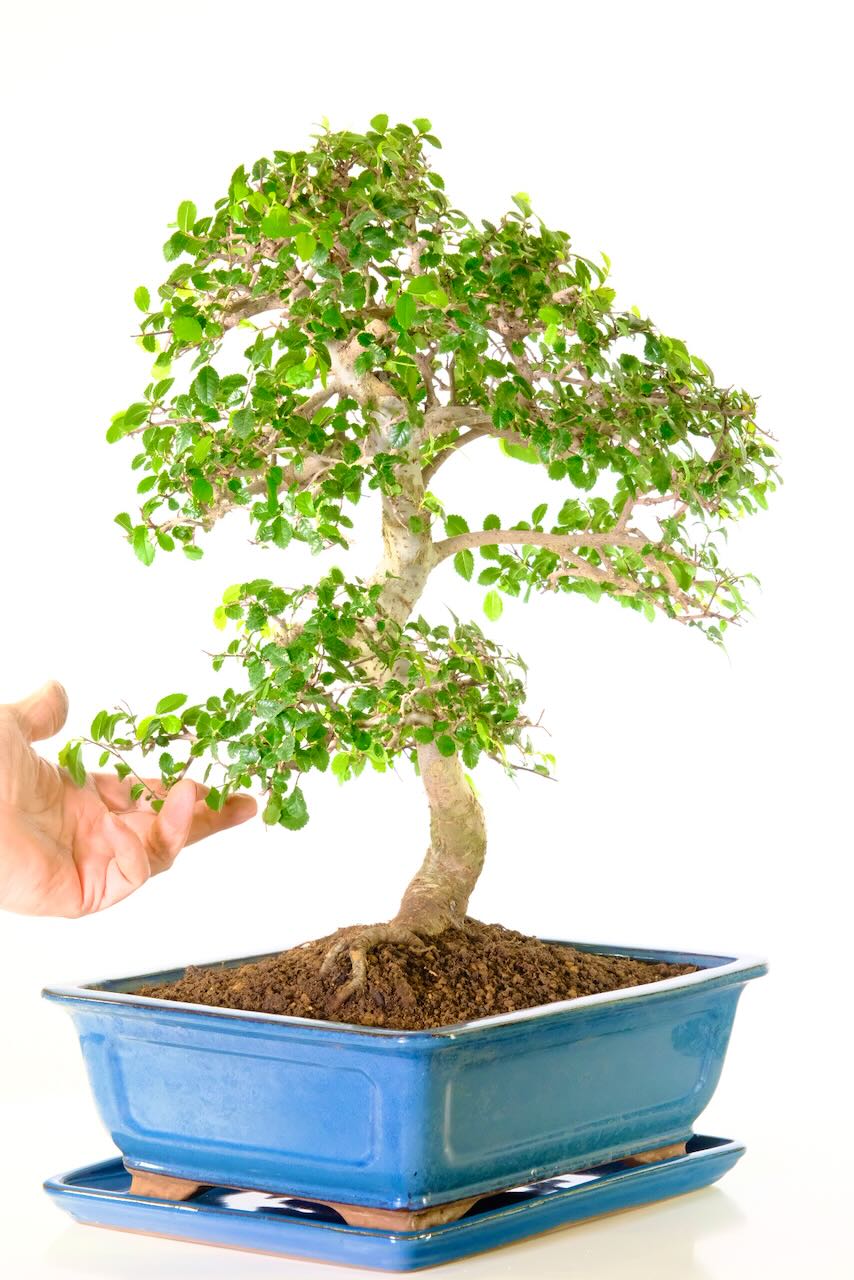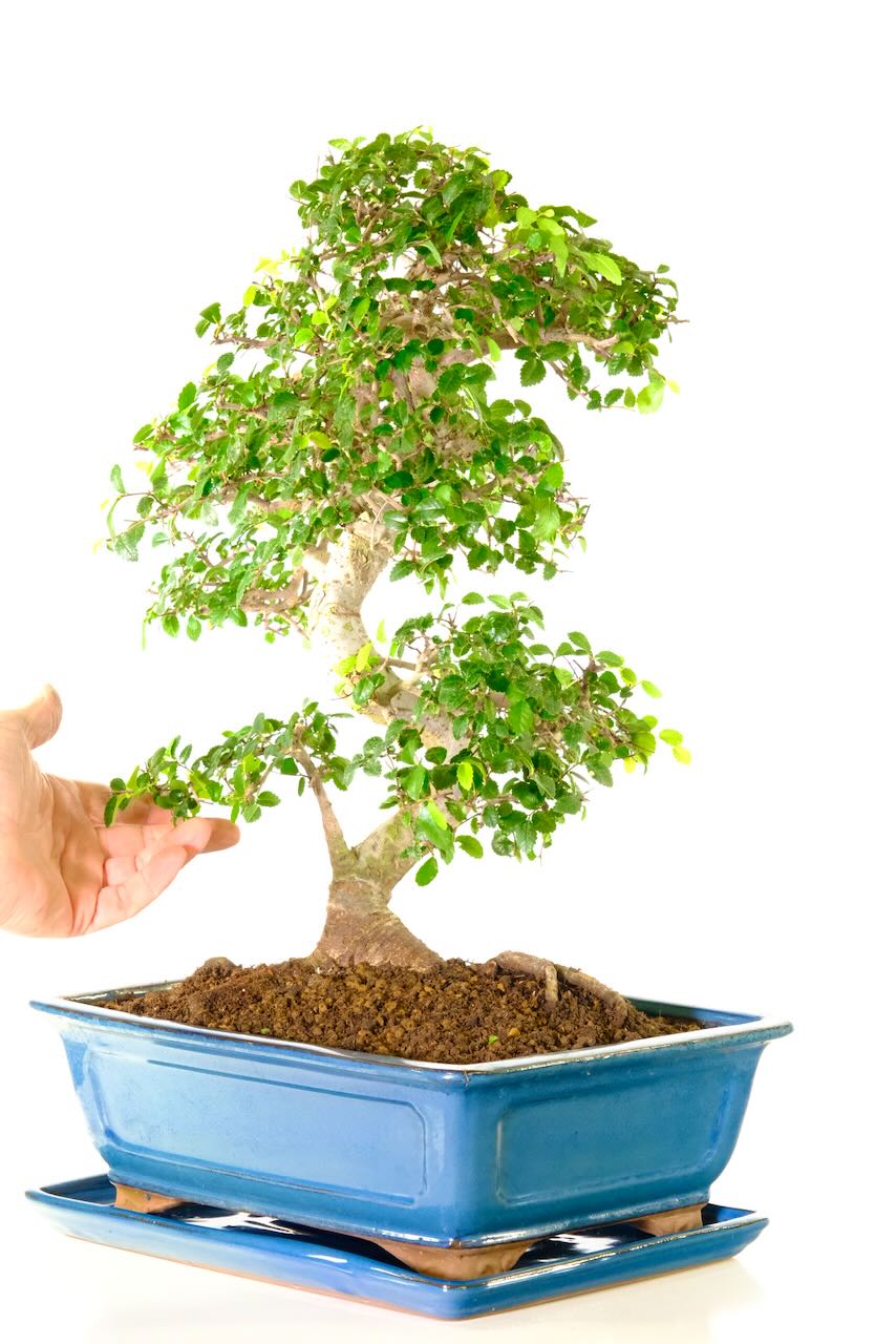 * a premium Chinese Elm bonsai in an ornate ceramic bonsai pot