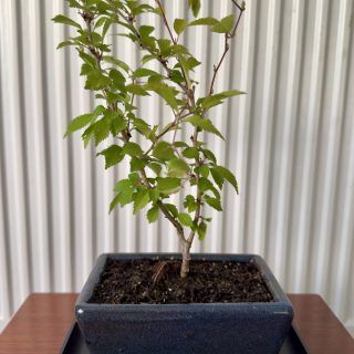 Fantastic hardy fruiting and flowering Cherry Blossom bonsai in navy ceramic pot. Easy care with the most gorgeous spring blooms. Highly recommended for beginners with beautiful colouring.
