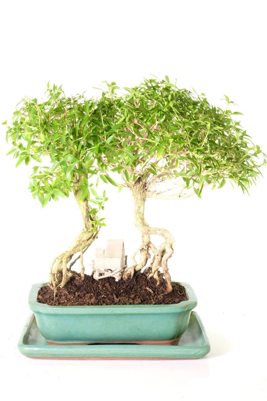 Twin Flowering Tree of a Thousand Stars Bonsai with Japanese Temple