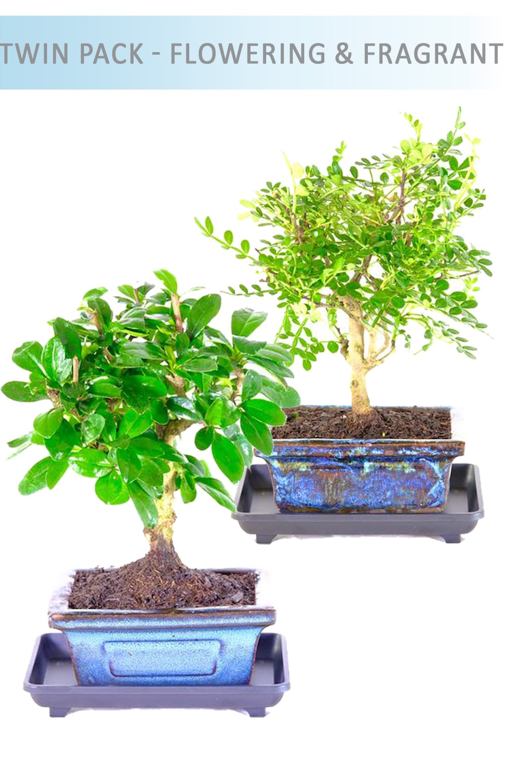 Twin Pack of 2 Adorable Bonsai – Flowering Fukien Tea Tree & Fragrant Pepper